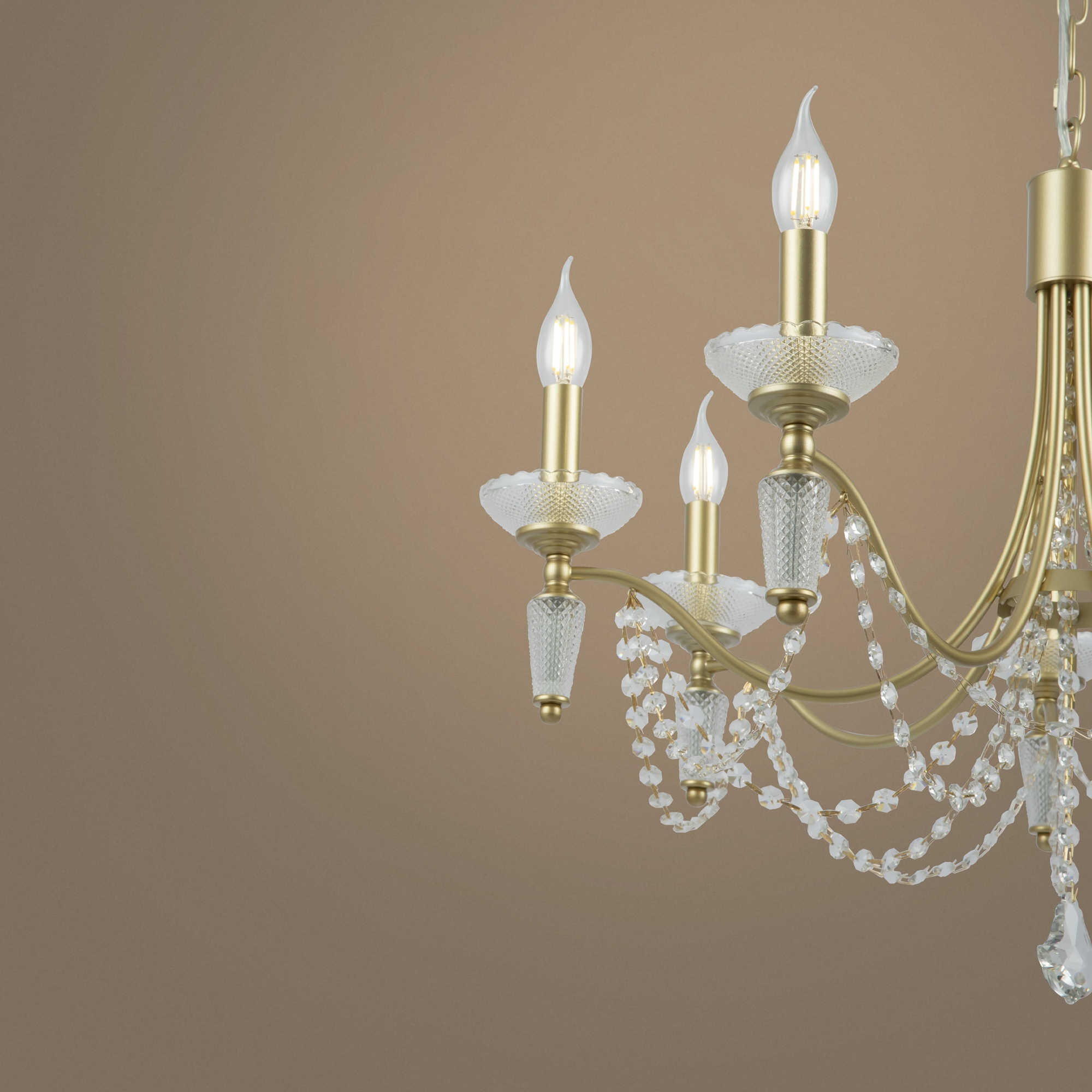 Элегантные светильники серии Zoe прекрасно впишутся в классический интерьер в теплых тонах. Главное украшение серии - декоративные элементы из рифленого стекла, напоминающие маленьких балерин в воздушных пачках, кружащихся в переливах света. Хрустальные нити и крупная каплевидная подвеска по центру усиливают игру света и создают торжественное настроение. Серия включает люстры на 12, 7 и 5 рожков и бра. Прекрасным дополнением к серии Zoe станут лампочки VOLTEGA «свеча на ветру».