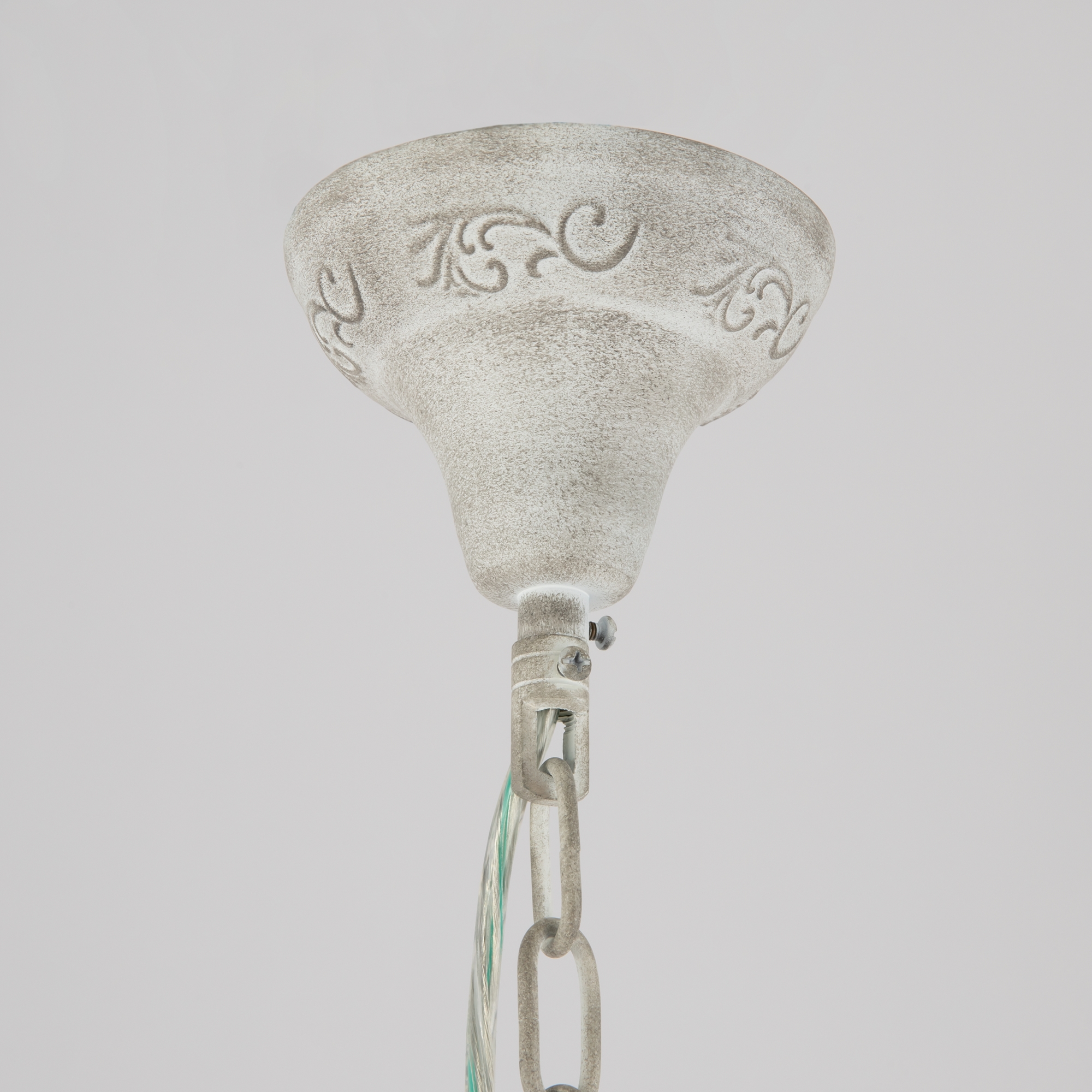 Материал арматуры – металл, цвет – белый антик. Льняные абажуры дополнены лентами. Резные элементы. Символичный декор - фигурки птиц на розетках. Высота люстр регулируется.