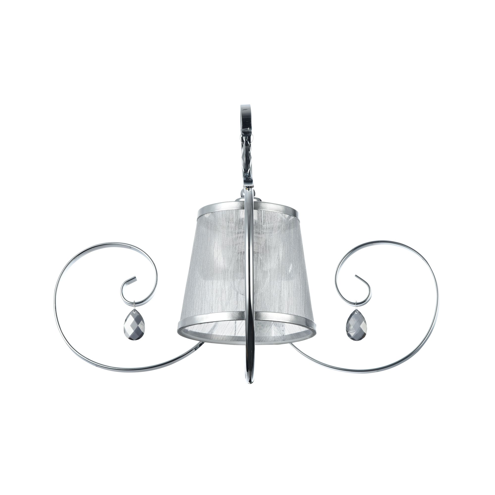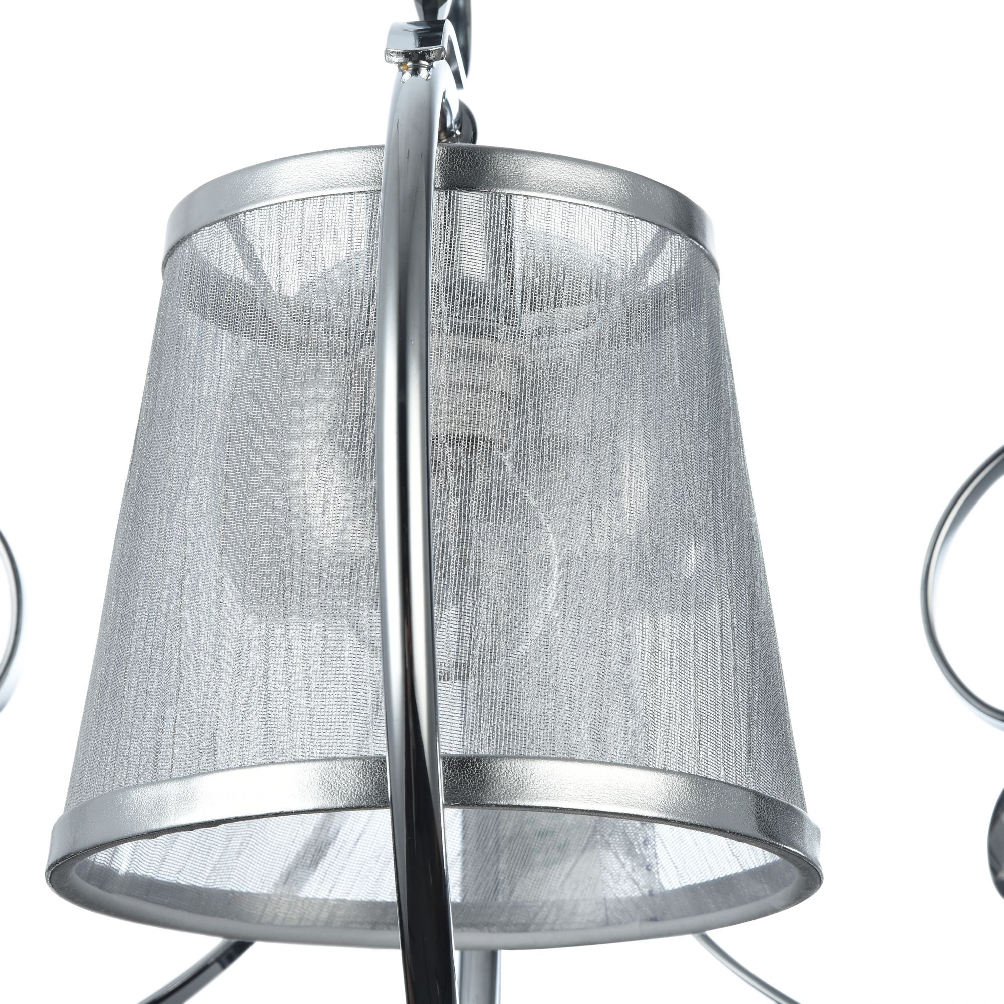 Светильники серии Simone выполнены в классическом стиле. Арматура цвета «античное серебро», абажуры из органзы на ПВХ. Люстры подходят для помещений с невысокими потолками благодаря конструкции «2 в 1». Дизайн изделий дополнен декоративными подвесками.