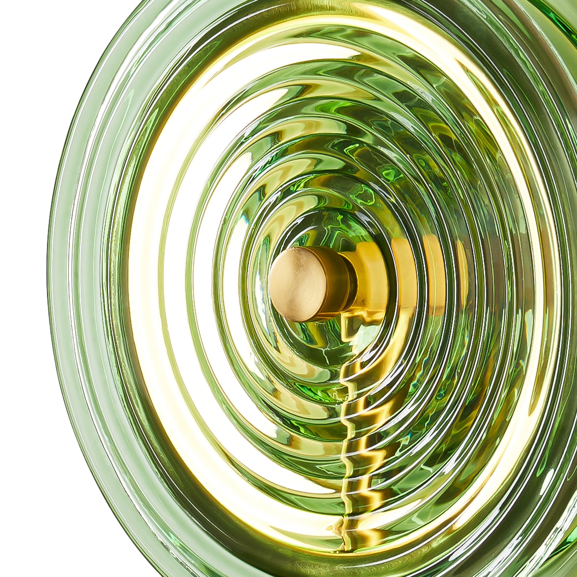 Арматура - металл. Цвет арматуры латунь. Плафоны из стекла в форме леденцов выполнены в четырех цветах: серый, зеленый, прозрачный и желто-оранжевый. Широкий спектр типов светильников: торшеры, настенные бра и подвесы. LED источник света. Цветовая температура 3000К.