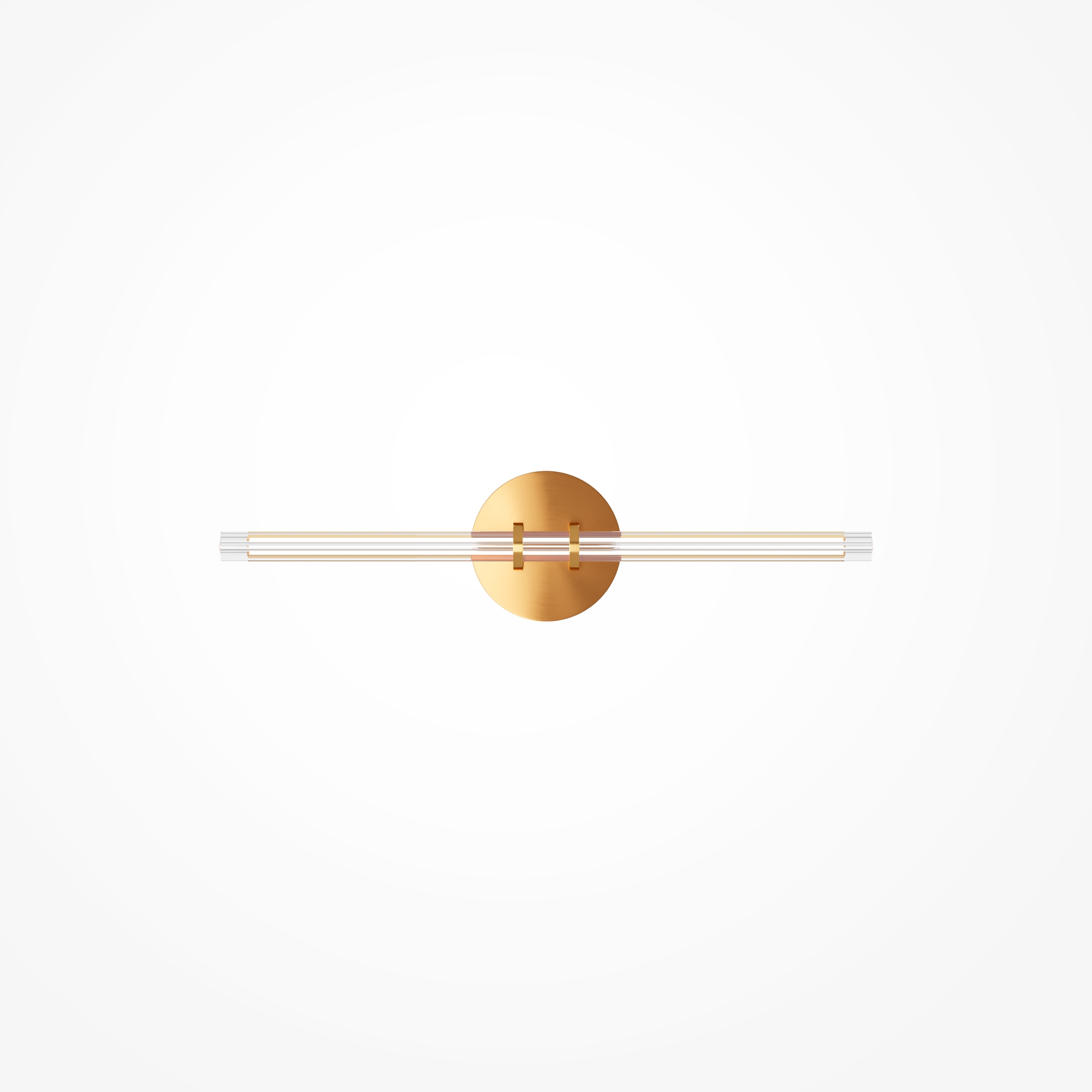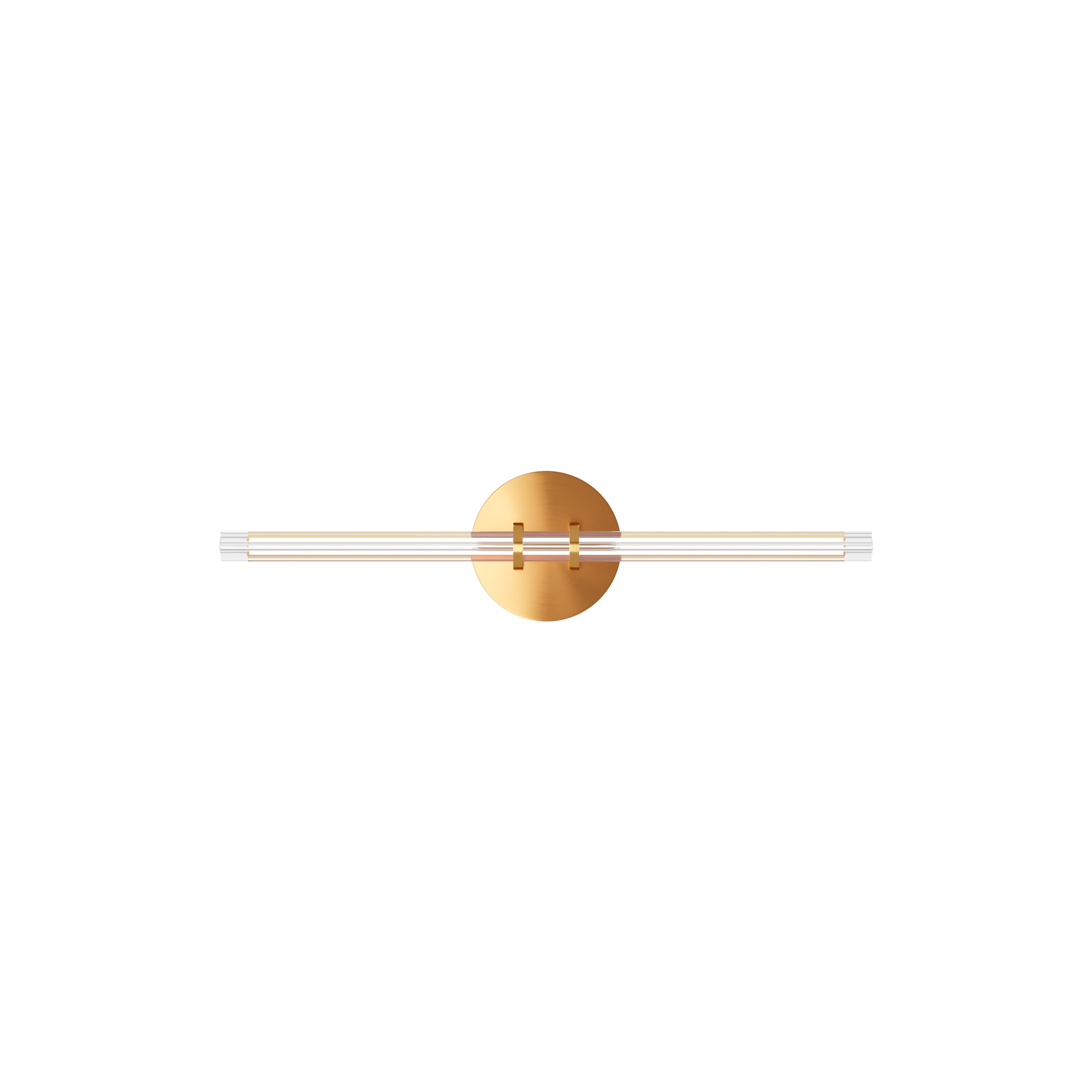 Металлическая арматура латунного цвета дополнена сатинированным финишным покрытием. Тонкие плафоны, изготовленные из рифленого стекла. Два варианта длины: 1200 и 1500 мм. Трехметровый провод можно регулировать для установки в помещениях с высокими потолками. Цветовая температура LED-источника света — 3000К, угол рассеивания — 120 градусов.