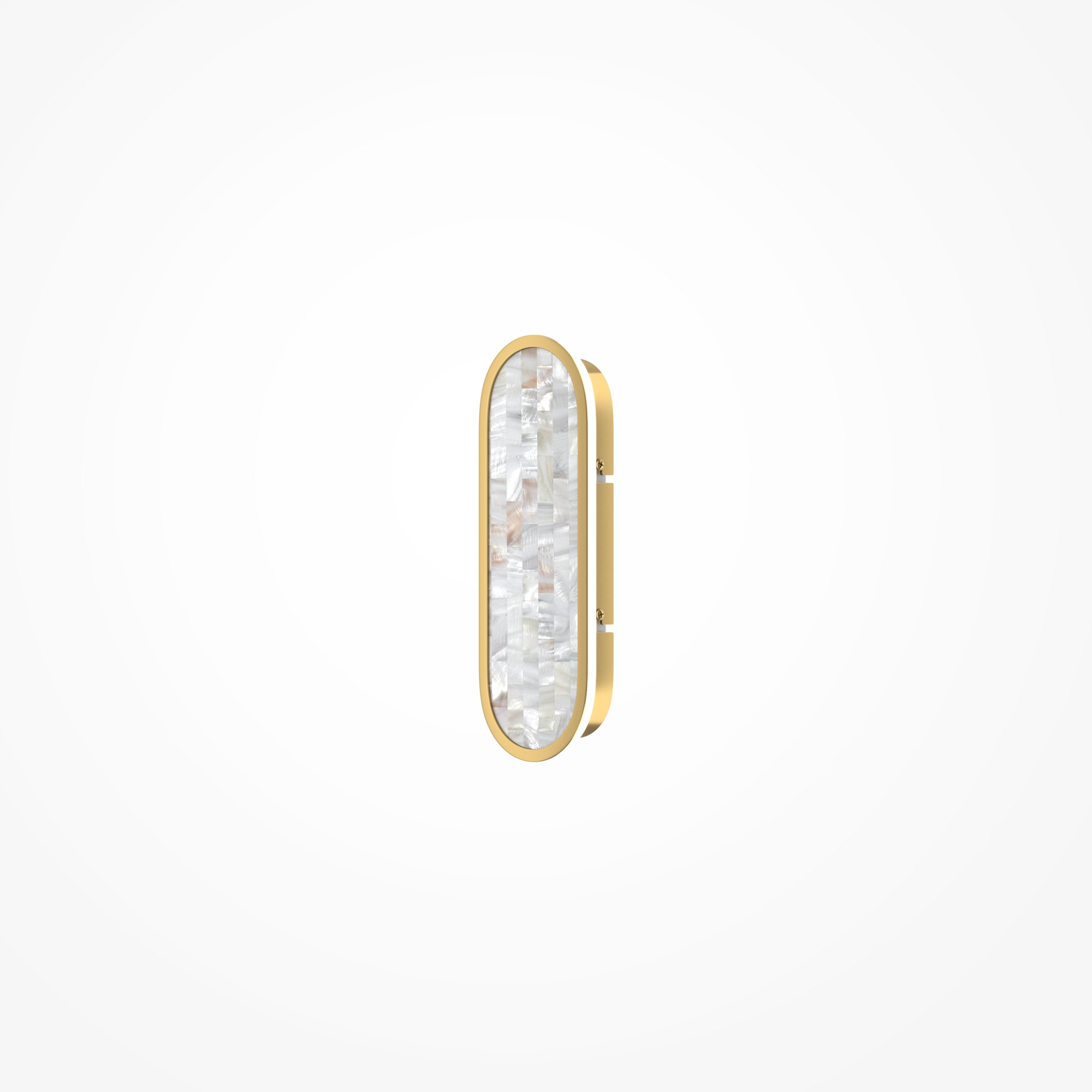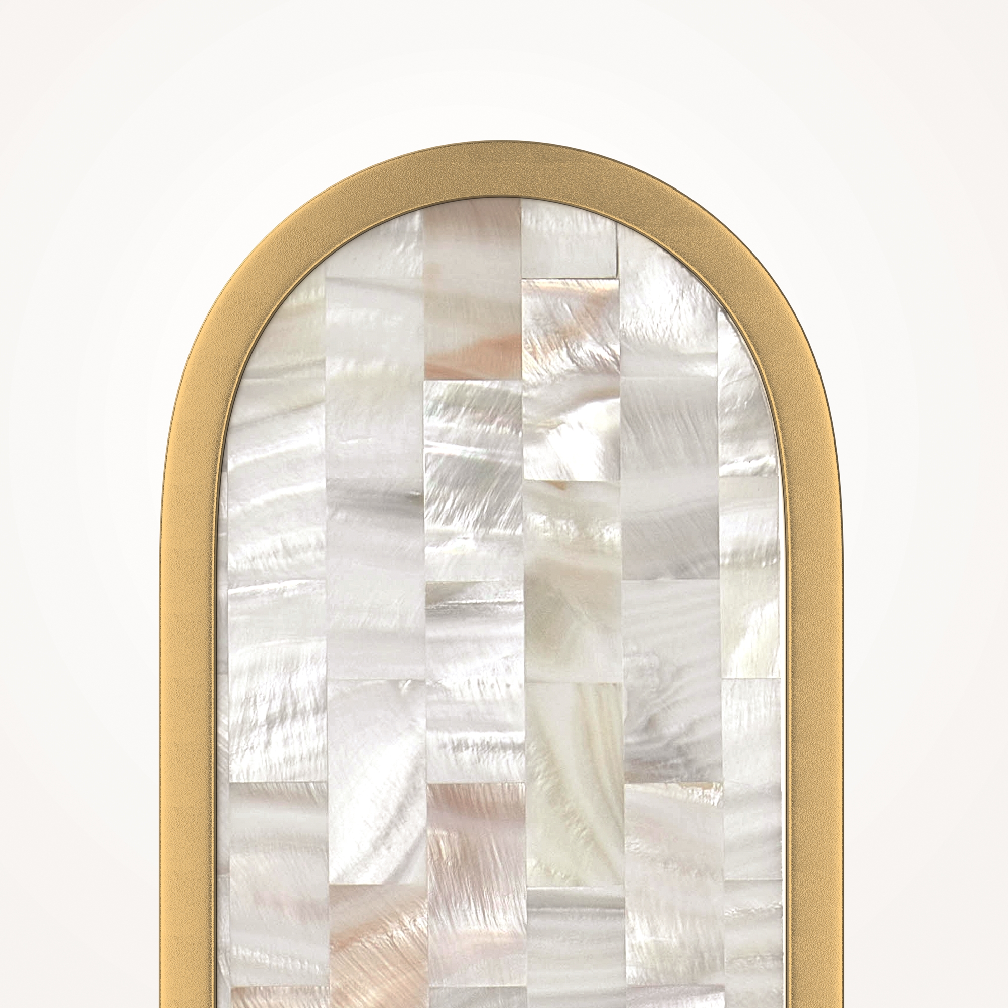 В серии представлены настенные светильники двух размеров и двух поколений. Декоративная мозаика из натурального перламутра играет нежнейшими бликами. Контраст текстур — переливы перламутра и матовая поверхность металла цвета латуни. LED-лента под акриловым рассеивателем создаёт ореол на стене. Предусмотрено трехступенчатое переключение температуры света через вкл-выкл (2700-3000-4000K), позволяющее создавать желаемую атмосферу. Эффектно светильники смотрятся и в комбинации друг с другом.