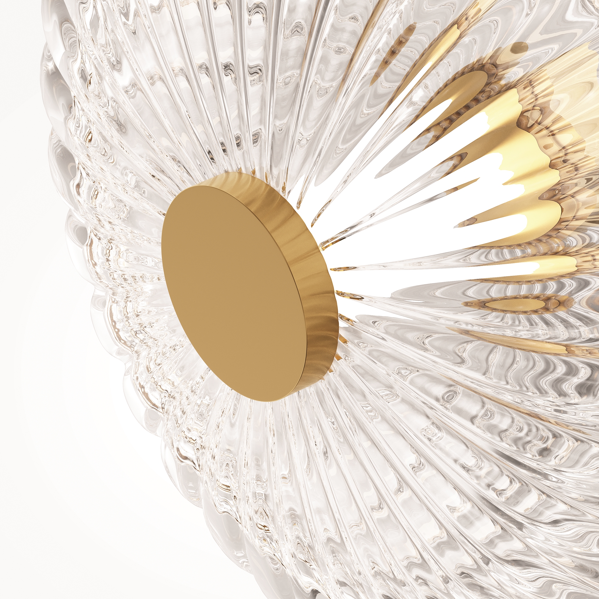 Арматура из металла, цвет – хром. Акцентный декор в виде рельефных сфер из литого стекла. Источник света – светодиодная лента – скрыта под акриловым рассеивателем. Регулируемая высота подвесных светильников.