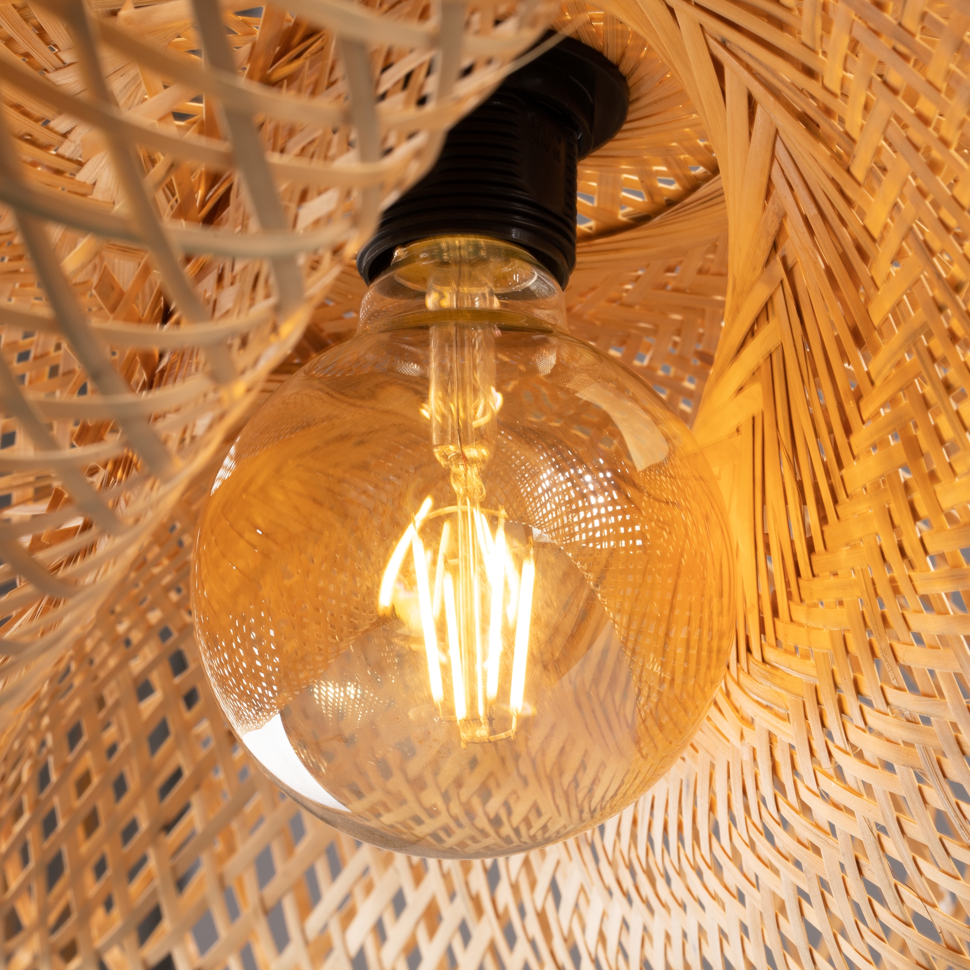 Материал чаши крепления - металл, цвет - черный. Абажур из натурального ротанга. Футуристические плавные формы архитектуры Захи Хадит и теплые природные материалы буквально сплетены в неповторимом дизайне. Форму абажура можно менять, развязав специльные узелки. Источник света - лампа с цоколем Е27.