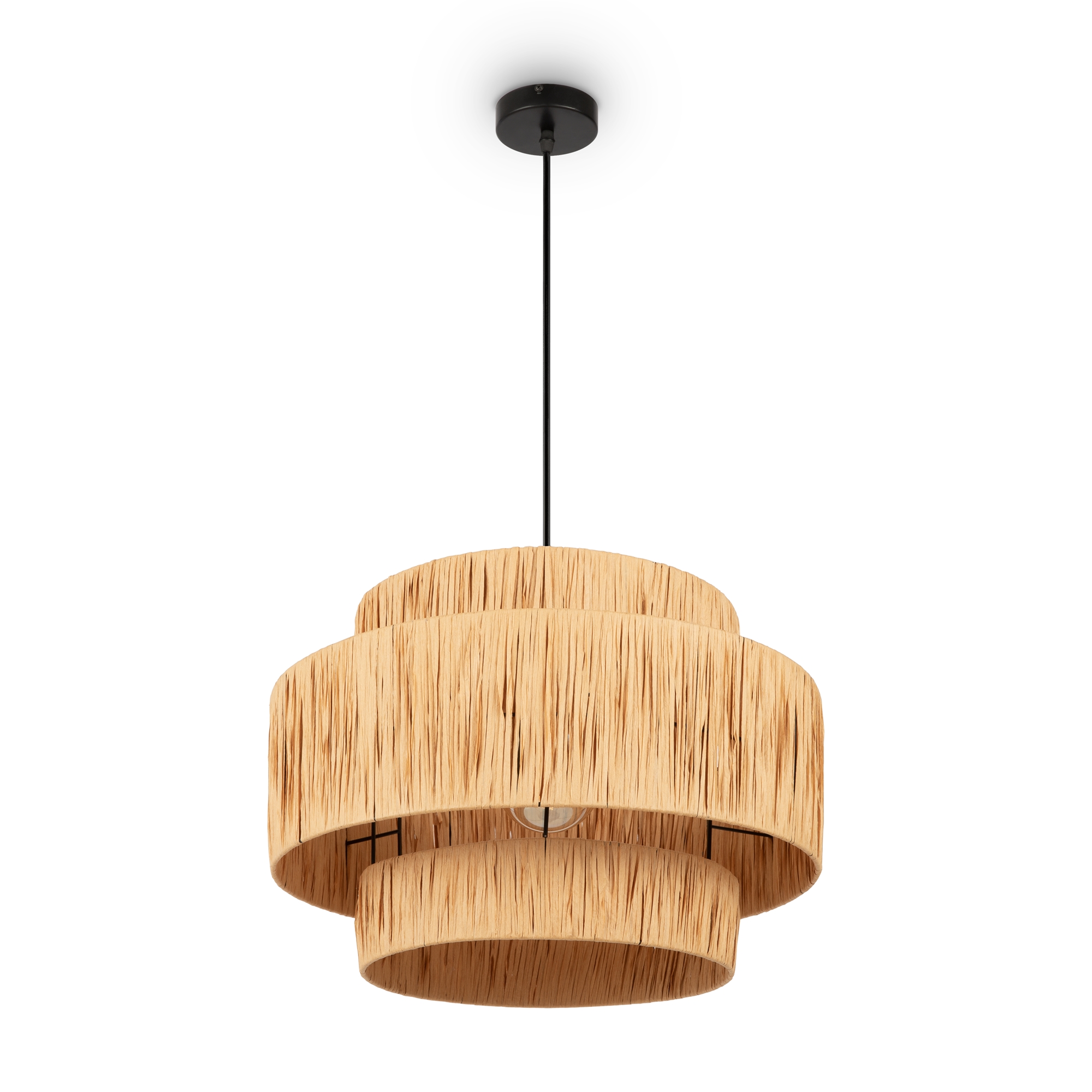 Материал основания - металл, цвет - черный. Абажур выполнен из бумажного шнура. Дизайн вдохновлен тропическими интерьерами в стиле бохо. Светильники окутывают пространство мягким светом, создавая атмосферу спокойствия и легкости. Источник света - лампа с цоколем Е27.