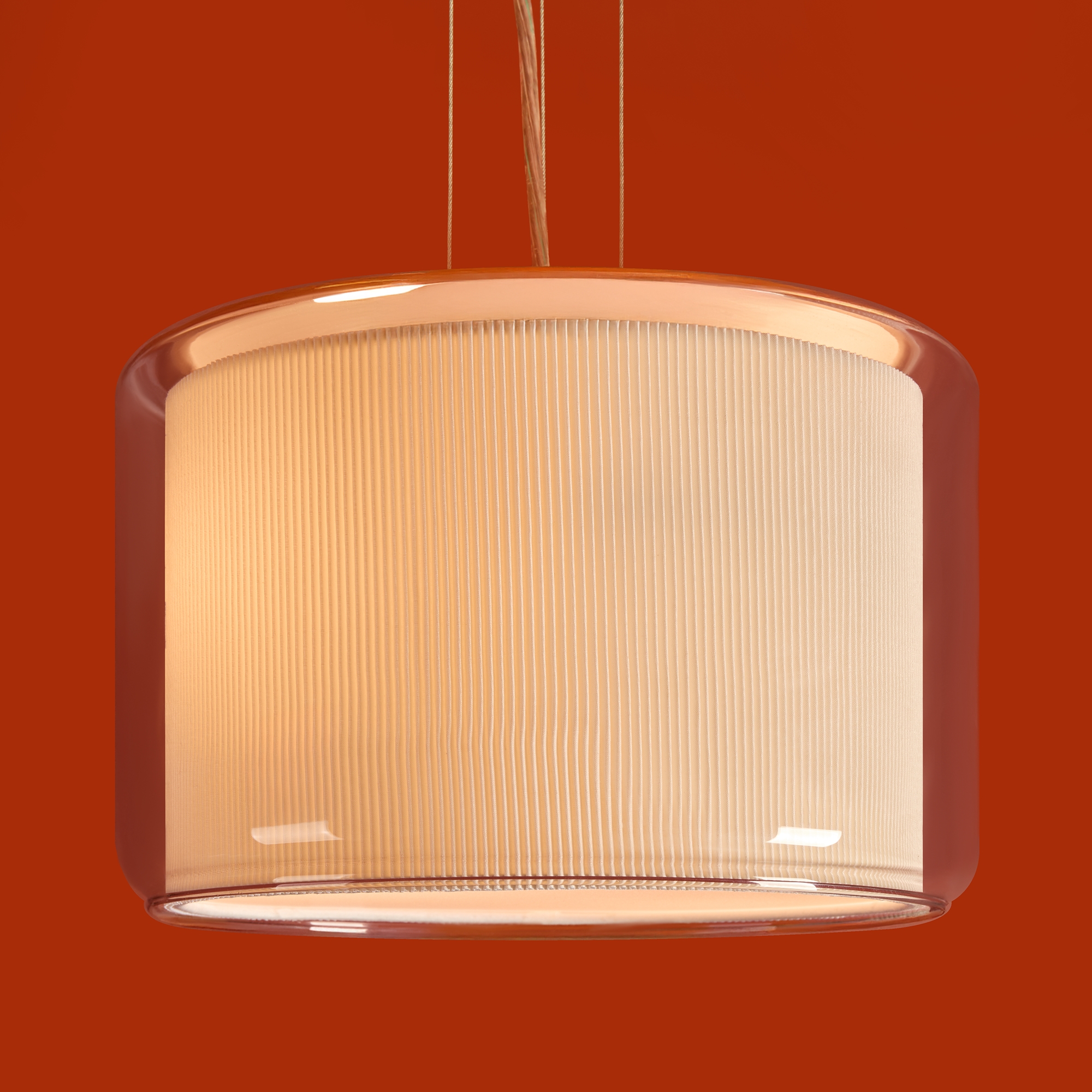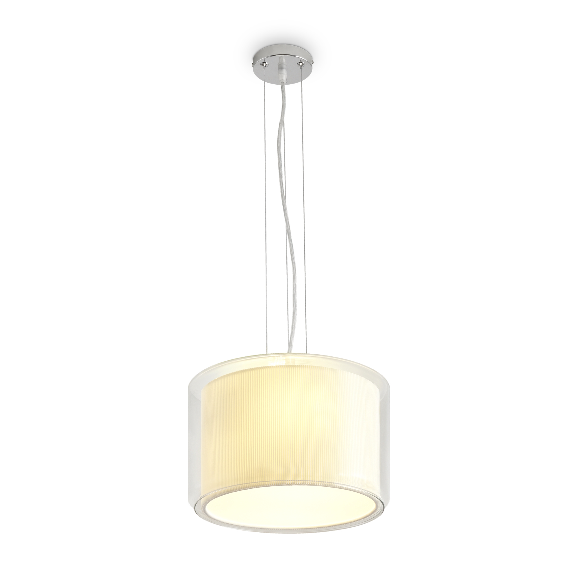 Сочетание стекла и тканевой плиссировки для мягкого рассеянного света. Лампы E27 (в комлекте). Особенность плафонов - их многослойность. В серии представлены подвесной, потолочные и настенный светильники.