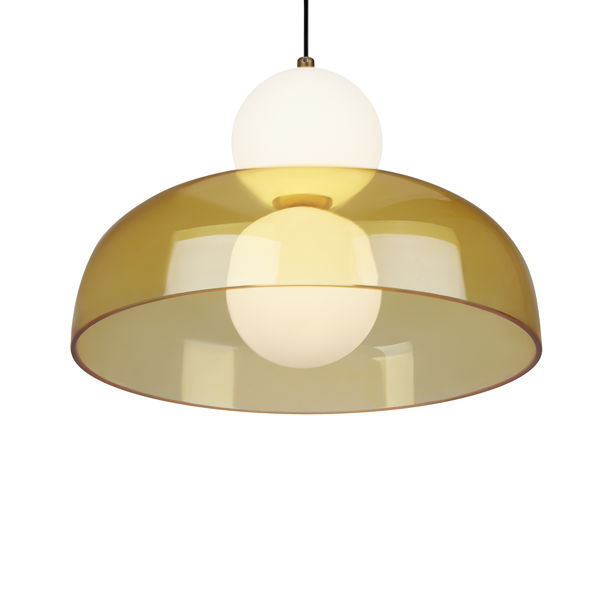 Арматура - металл, цвет - латунь. Стеклянные плафоны в виде сдвоенных матовых “шариков” дополнены широкими декоративными плафонами из стекла двух оттенков: дымчатый и янтарный. LED-источник света. Цветовая температура - 3000К. Светильники подойдут для светлых интерьеров и детских комнат.