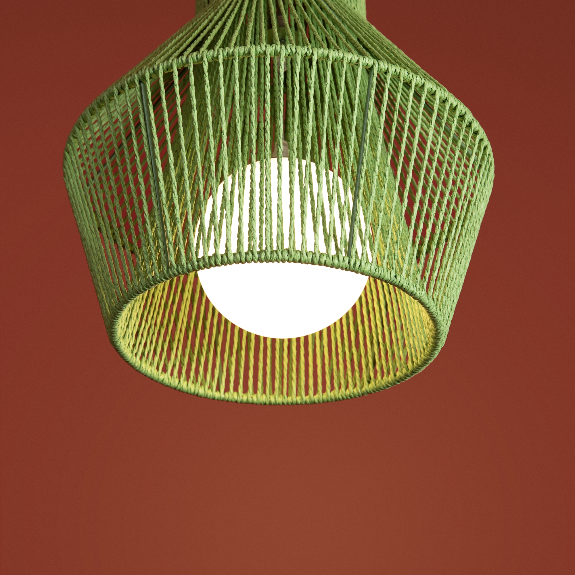 Загородный стиль. Абажуры: металл + бумажный шнур. Цвета: чёрный, молочный и трендовый зелёный (новинка серии Cottage). Матовый плафон с мягким светом. Эко-дизайн для дома, кафе, офиса.