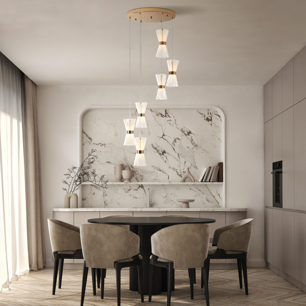 Арматура металл. Цвет золото. Плафоны из акрила. Форма песочные часы. Золотая окантовка как декоративный элемент. К светильникам прилагается пульт управления. LED источник света. Цветовая температура 2600-6000К.