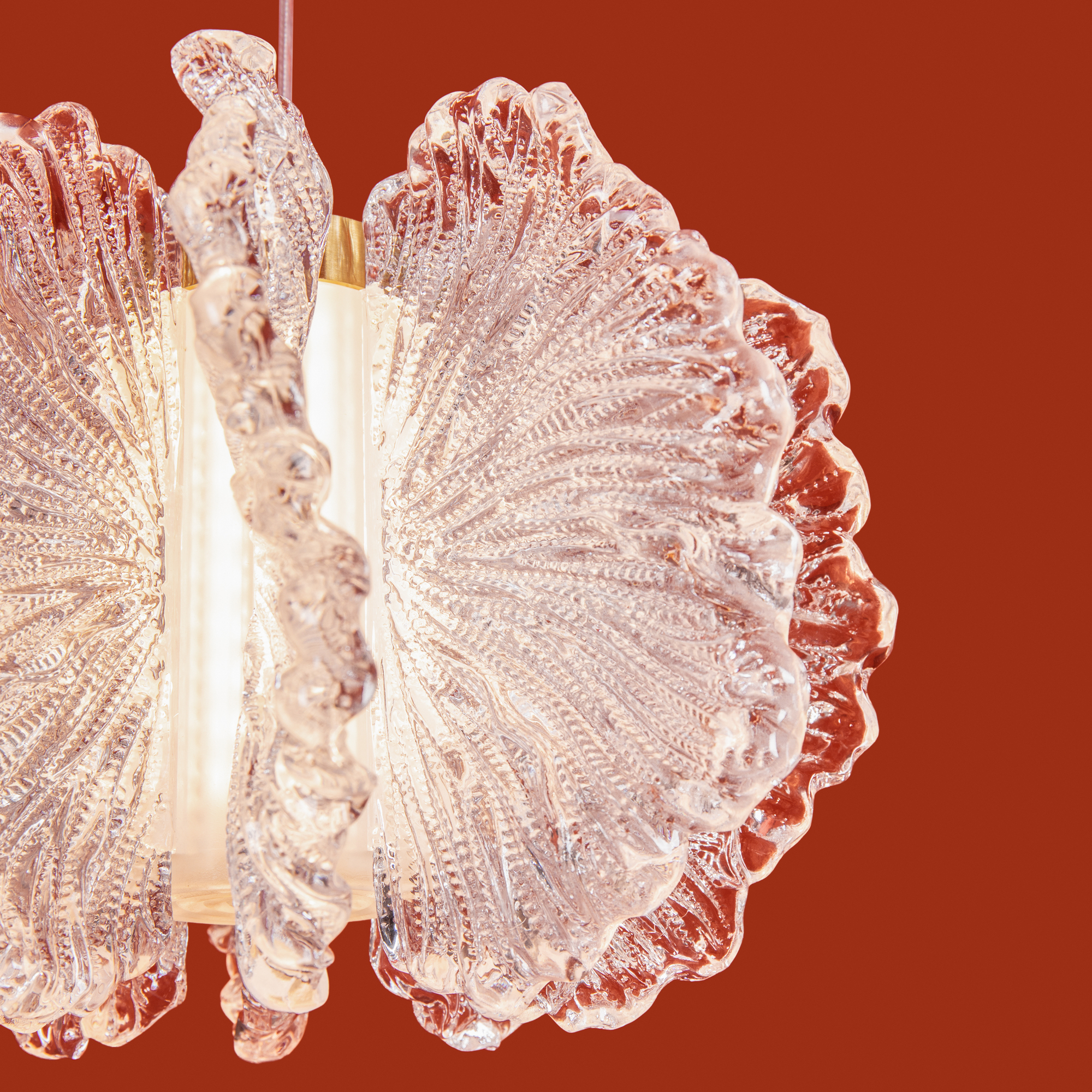 Подвесные светильники Flower: воздушные акриловые плафоны на металле. Встроенные LED (2700K), угол рассеивания 120°. Высота 1200 мм. Два варианта подвесов: каскадный и одинарный.