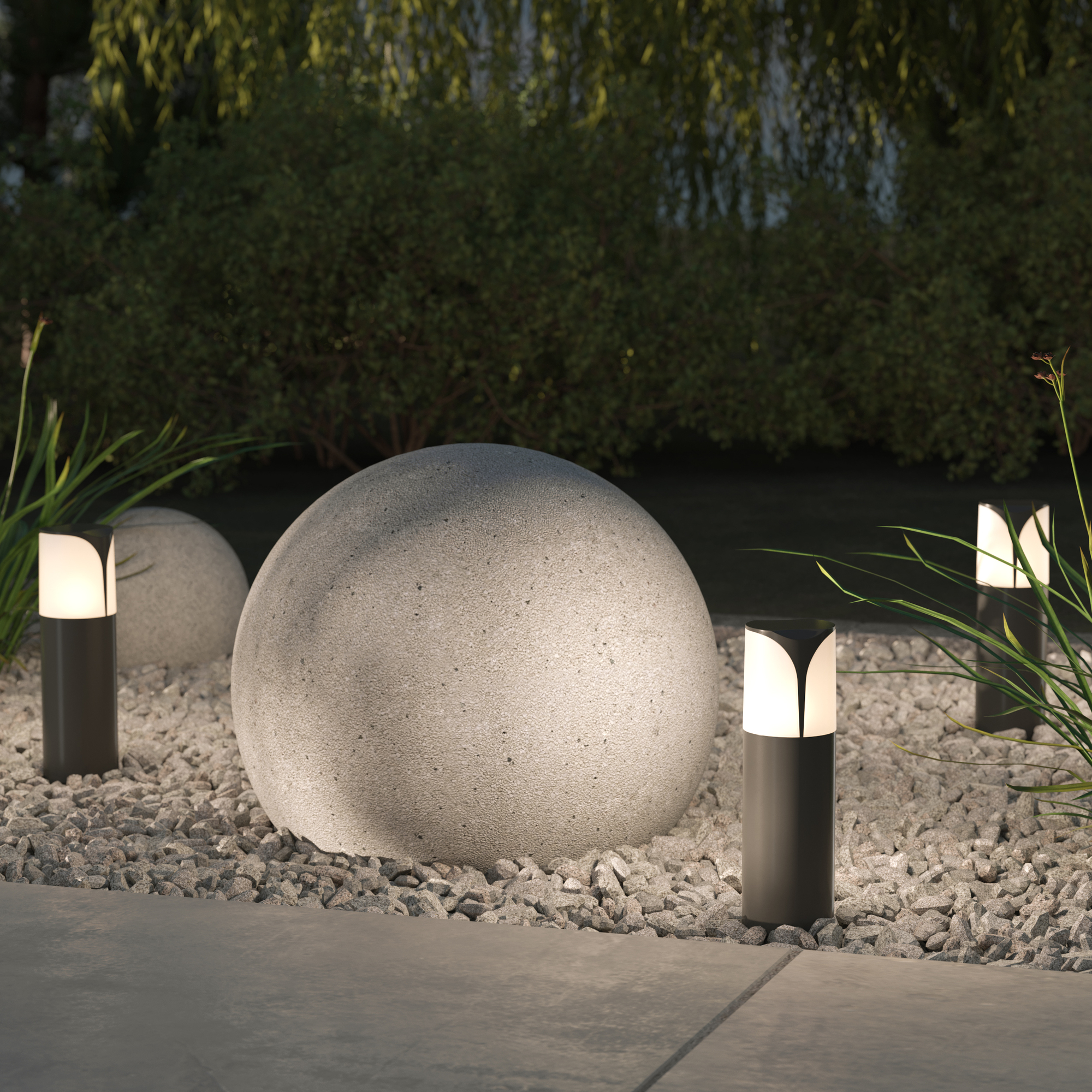 Универсальные садовые светильники-столбики с высокой степенью защиты IP65 для освещения дорожек и входных групп. Корпус из литого алюминия покрашен темно-серой порошковой краской.