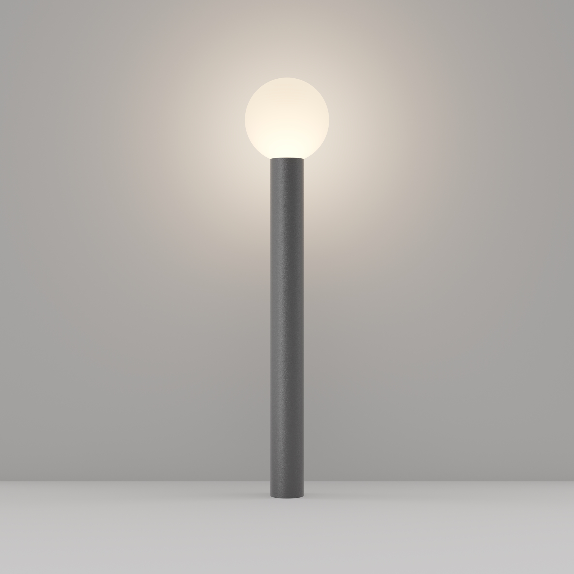 Алюминиевый корпус. Оттенки - черный, серый. Сферические плафоны из белого матового стекла. Защита от коррозии и перападов температур. Высокая степень защиты — IP 54. Источник света — лампа с цоколем E27.