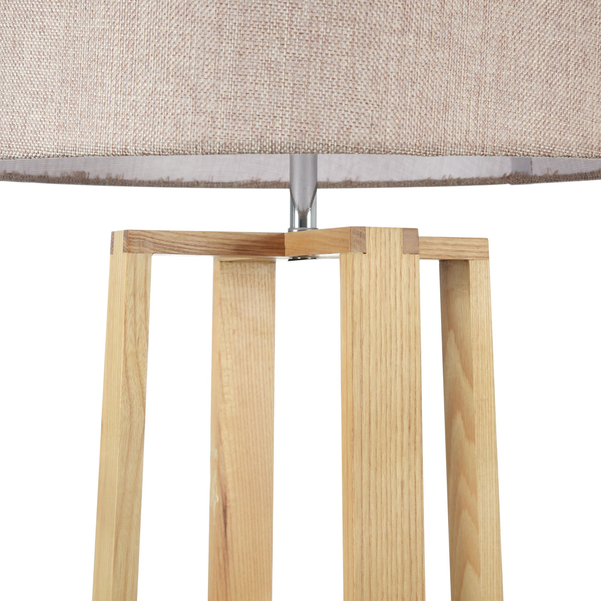 Торшер выполнен в современном стиле в неброской светлой цветовой гамме. Арматура изделия сделана из металла и древесины, а абажур - из ткани. Визуальная простота дизайна позволяет вписать торшер Nubi даже в готовый современный интерьер.