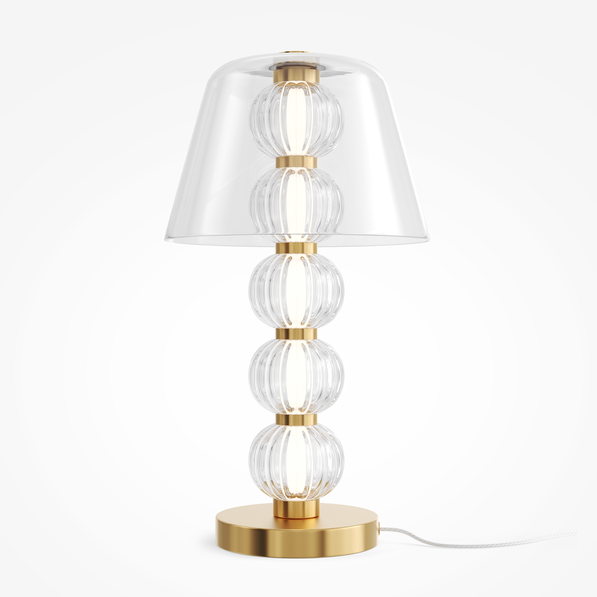 Арматура из металла, цвет – хром. Акцентный декор в виде рельефных сфер из литого стекла. Источник света – светодиодная лента – скрыта под акриловым рассеивателем. Регулируемая высота подвесных светильников.