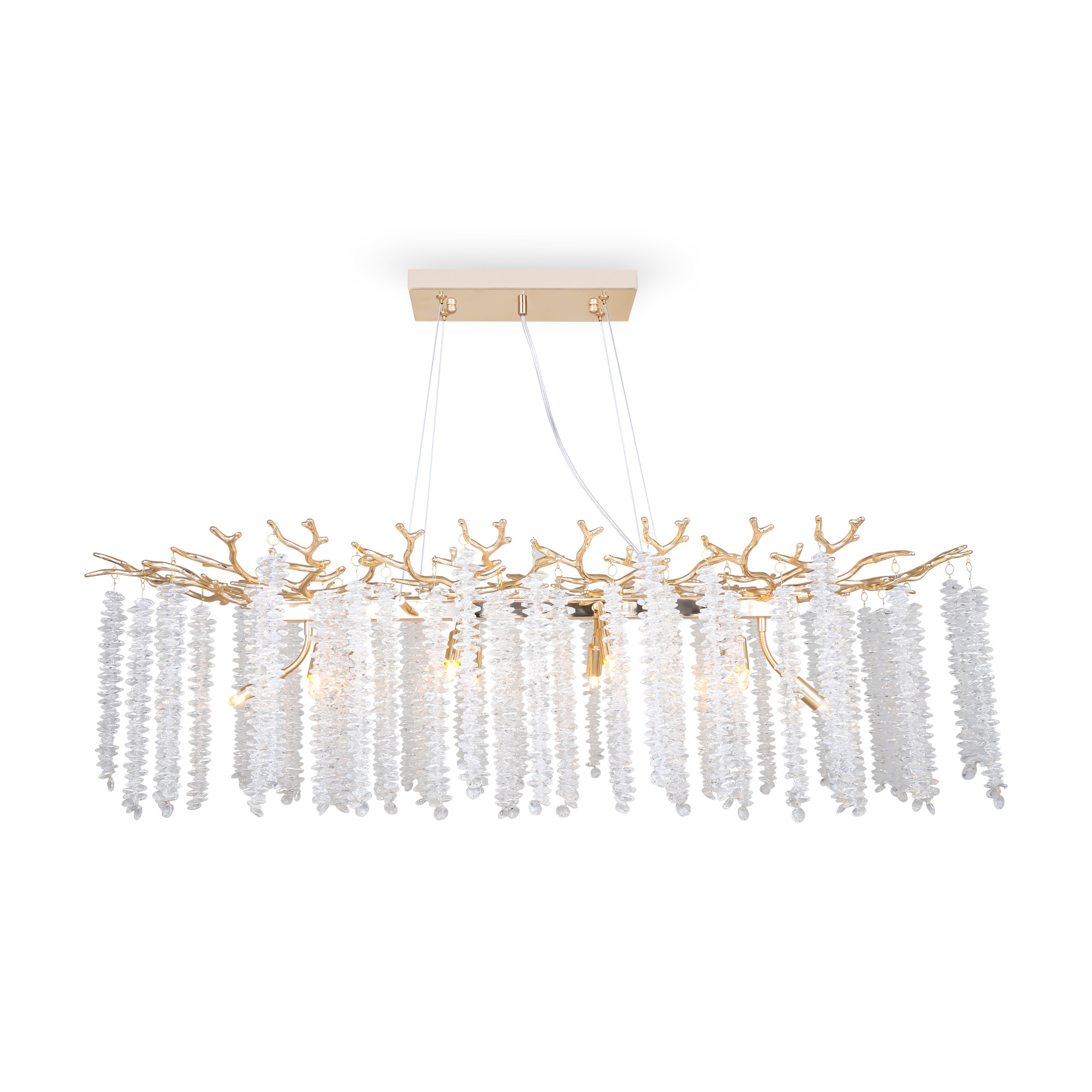 Материалы арматуры —металл, цвет — золото. Хрустальные декоративные элементы напоминают капельки - создают глубокие переливы света. Дизайн в трендовой растительной тематике. Источник света — лампа с цоколем G9 и с поворотной функцией.