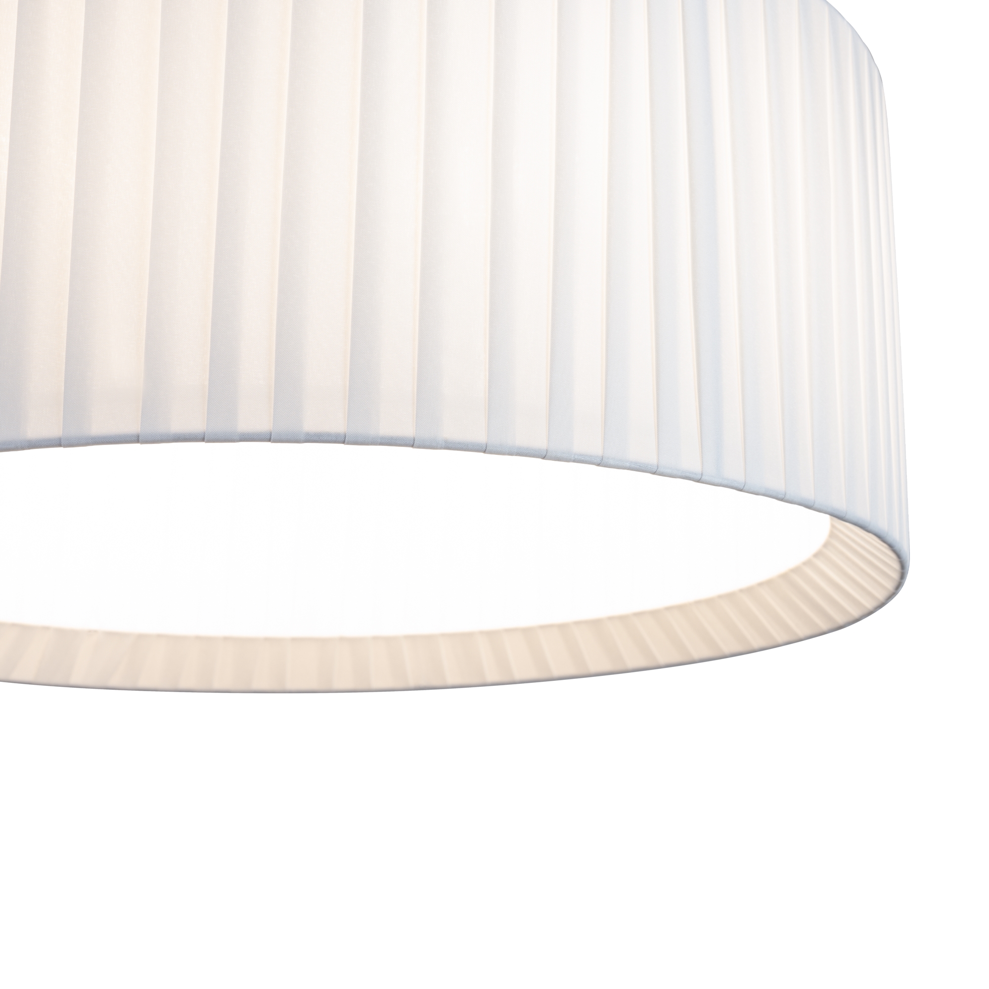 Металлическая арматура в цвете латунь. Подвесные светильники 2-х форм с плессированными абажурами, дополненные рассеивателем. Лампы E27/E14 (не в комплекте) дают мягкий рассеянный свет.