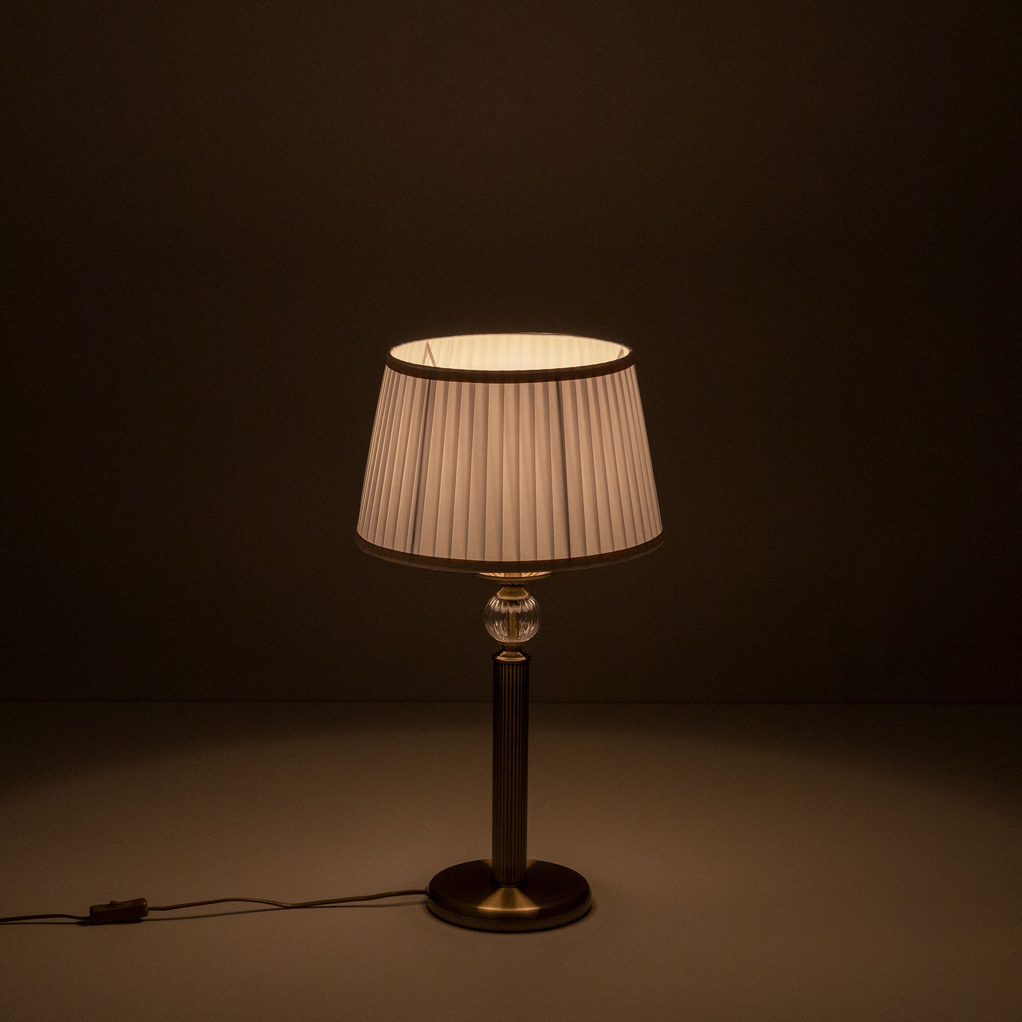 В настольном светильнике 1 лампа с цоколем Е27 максимальной мощностью для ламп накаливания 75Вт (в комплект не входит, приобретается отдельно), светодиодные лампы можно применять более яркие. Высота светильника 61см, диаметр абажура 32см, диаметр основания 18см. Длина сетевого провода 1,8м. Выключатель находиться на проводе, на расстоянии 20см от основания.