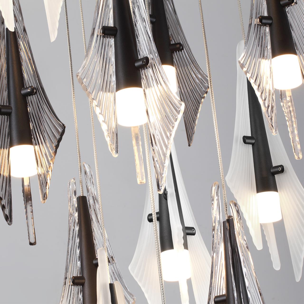 Afalina ― невероятно дружелюбный дельфин из семейства афалин, обитающий в черном море. Именно они стали источником вдохновения при создании эскизов этих минималистичных и лаконичных светильников. Декоративные стеклянные рассеиватели выполнены в трех вариантах цвета: дымчатом, прозрачном и белом матовом. Каждый стеклянный элемент выполняется вручную по эскизам автора. Композиция из стеклянного декора напоминает стаю дельфинов афалин в сверкающей глади воды.