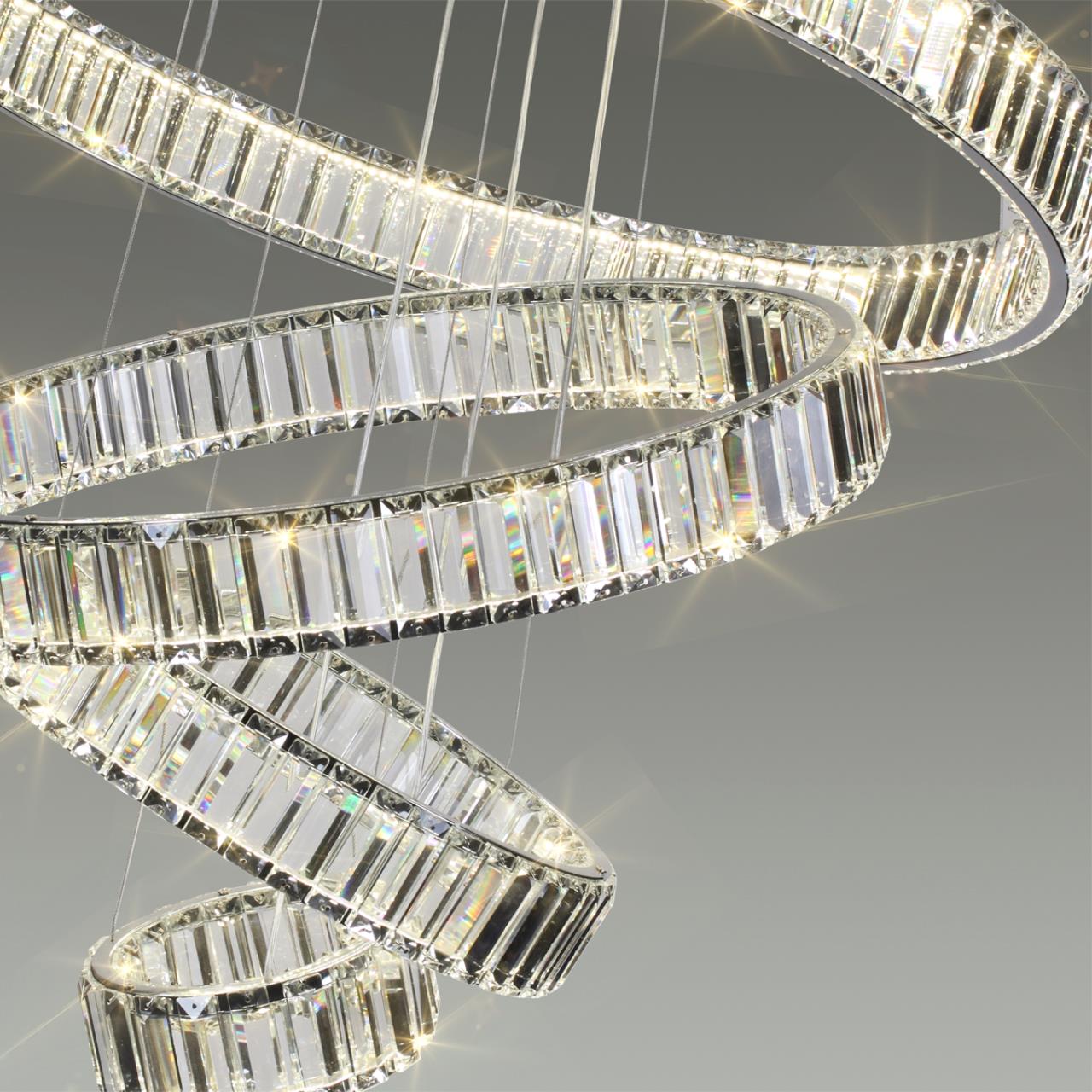 Линия Vekia — это светодиодные светильники в виде колец разного диаметра с ободом из хрусталя высочайшего качества класса «A». Широкая ассортиментная линейка включает в себя каскадные модели, что позволяет располагать кольца в разных положениях по отношению друг к другу. Особенностью этой линии является использование высокоэффективных светодиодов со световой отдачей 100 лм/Вт, что обеспечивает высокую яркость освещения.