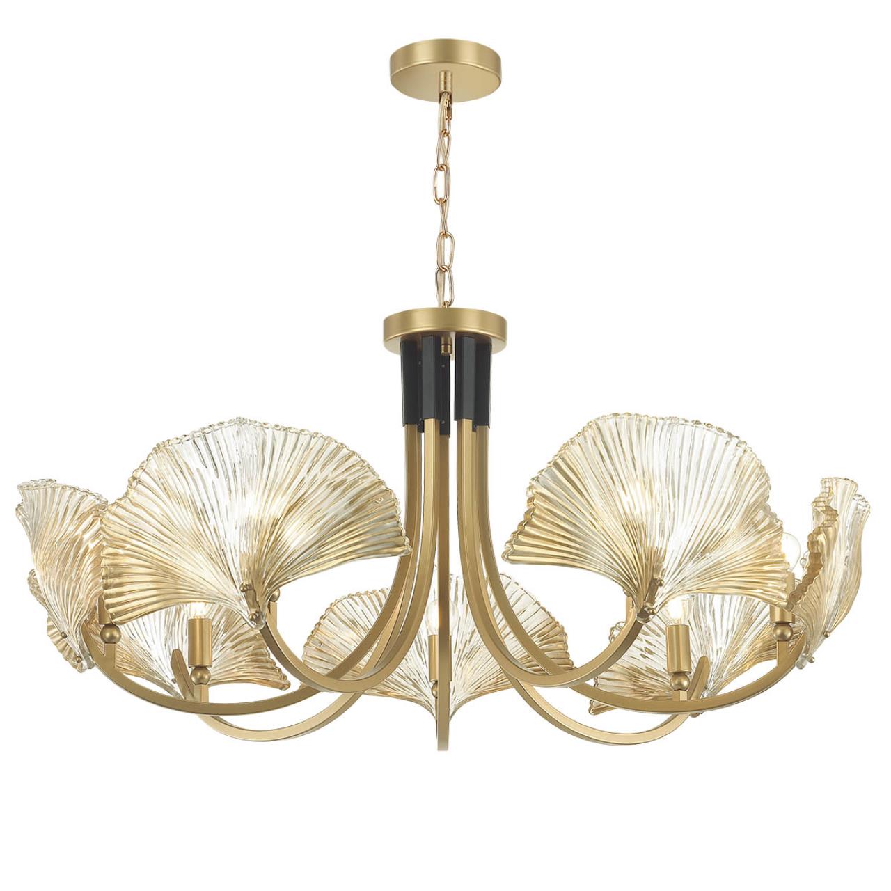 Ventaglio — в переводе с итальянского «веер», это линия светильников выполненная в популярном стиле ар деко. Роскошная и изящная одновременно она станет изумительным украшением интерьера. Декоративный стеклянный элемент в виде листка гинкго билоба декорирован тонкими расходящимися от центра гранями, на краях листа создан эффект золотого градиента.