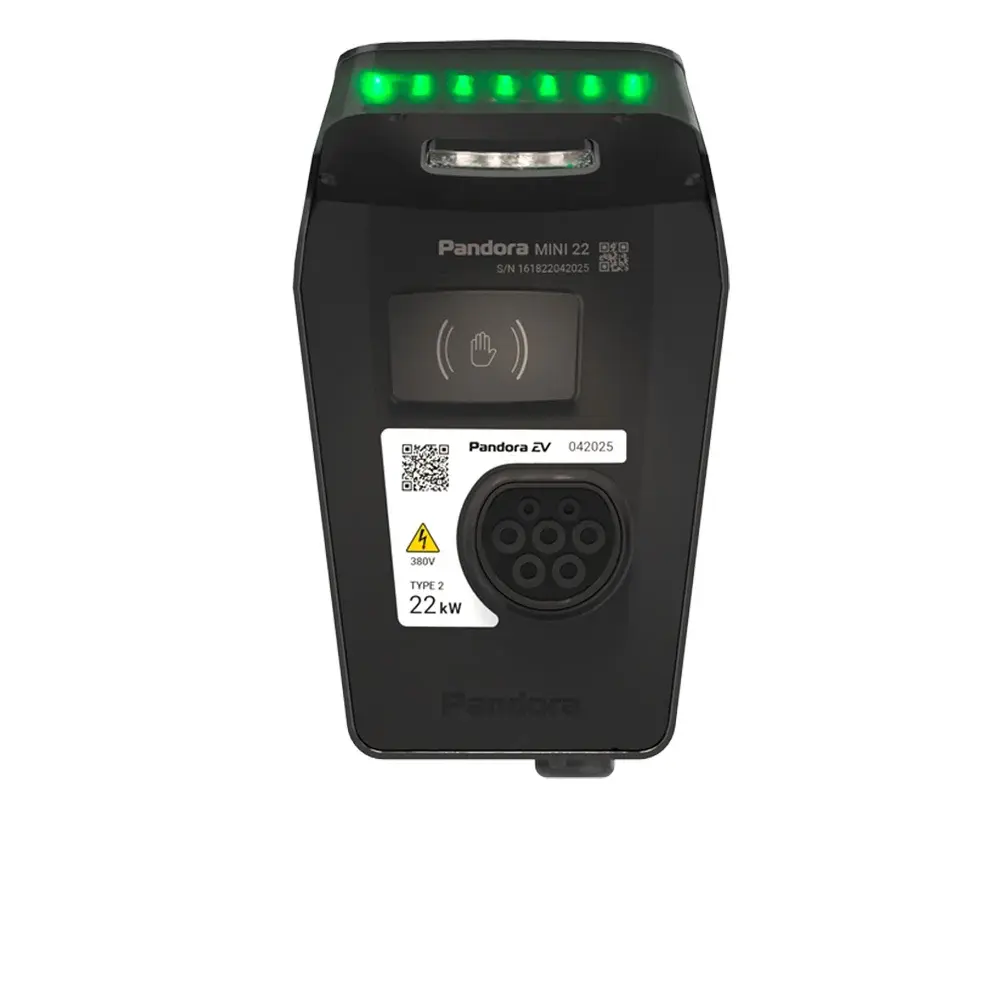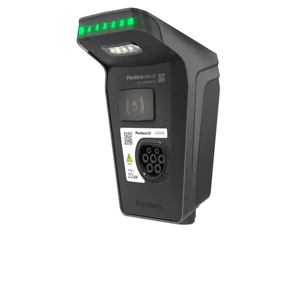 Универсальная зарядная станция Pandora MINI 22 предназначена для зарядки переменным током всех типов электромобилей и гибридов дома, в гараже, в офисе или в подземном паркинге многоквартирного дома. MINI 22 полностью поддерживает подключение к шкафам балансировки и реализацию всех заложенных интеллектуальных алгоритмов корректного и безопасного распределения имеющейся мощности на объекте.