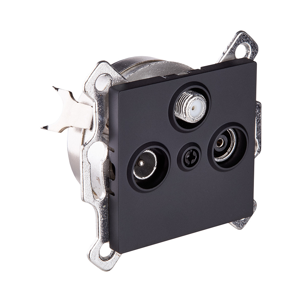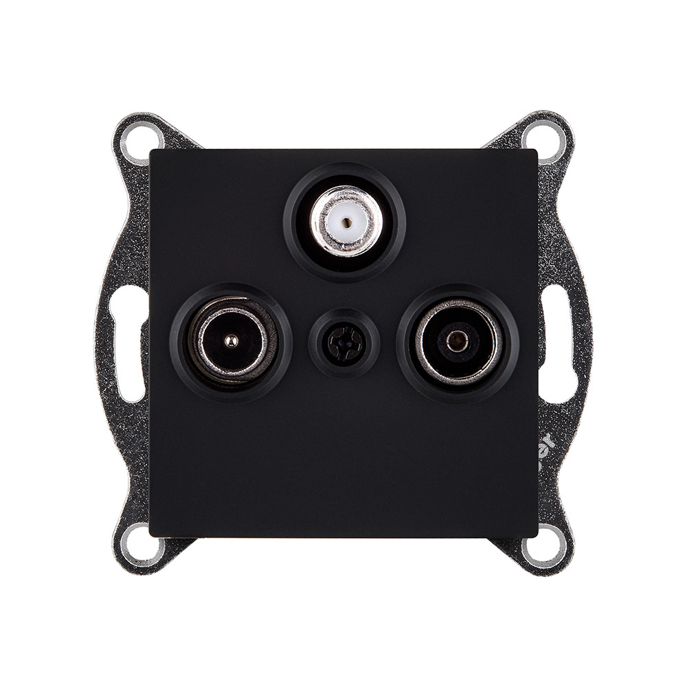 Розетка тройная TV (мама) + TV (папа) + спутниковая SAT, черный матовый Kollinger REA-036BM для Aspekt, Eleganz, Reflex