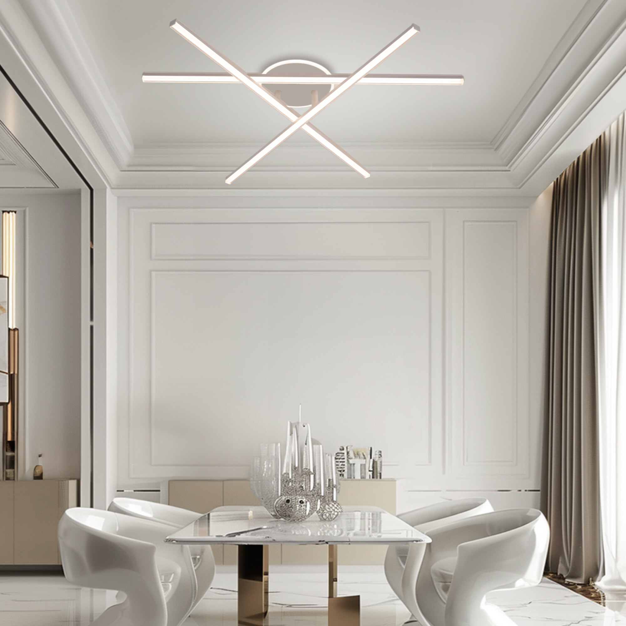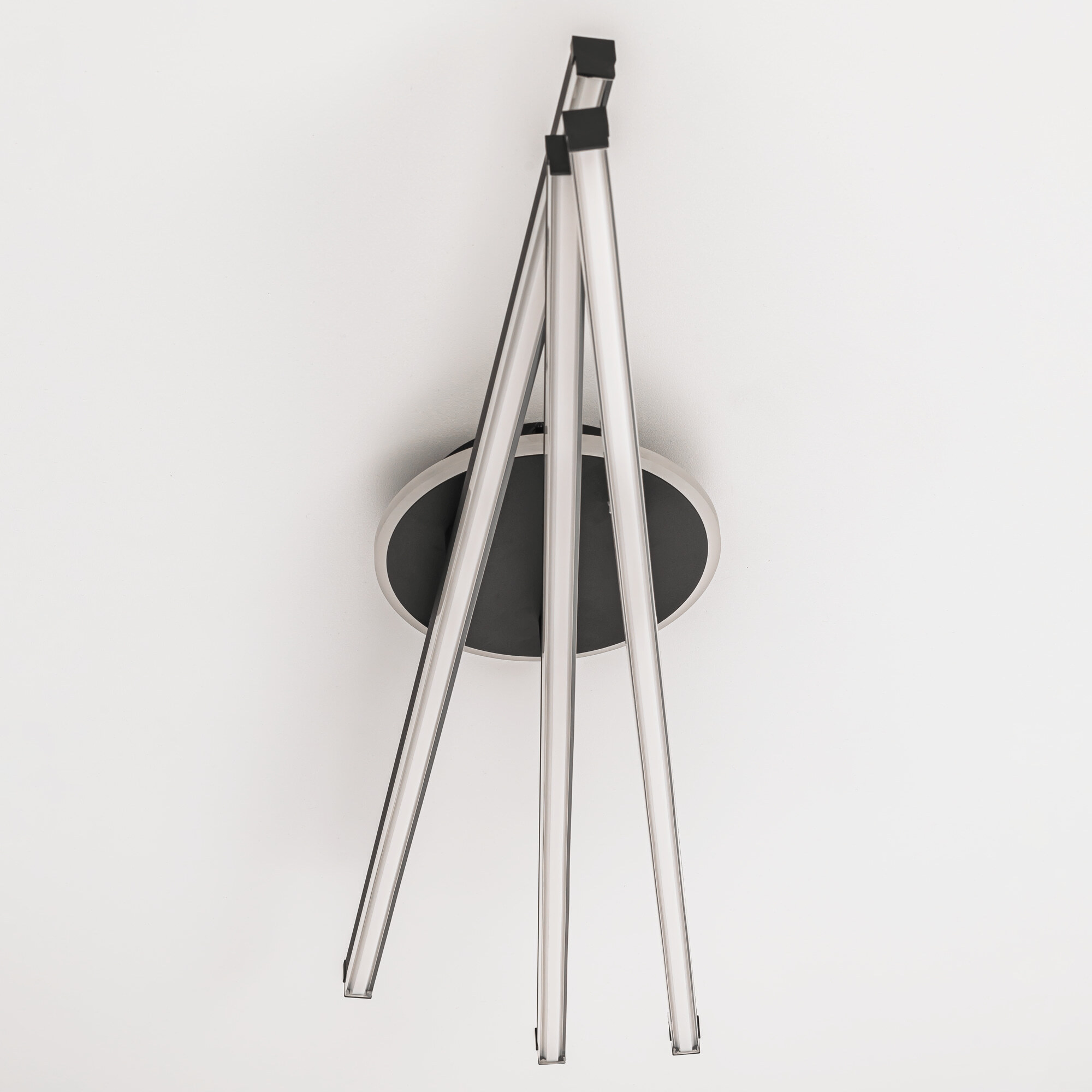 Отличительной особенностью светильника является наличие изящной подсветки основания и возможность при монтаже устанавливать рожки-штанги в разных положениях создавая свои уникальные формы.