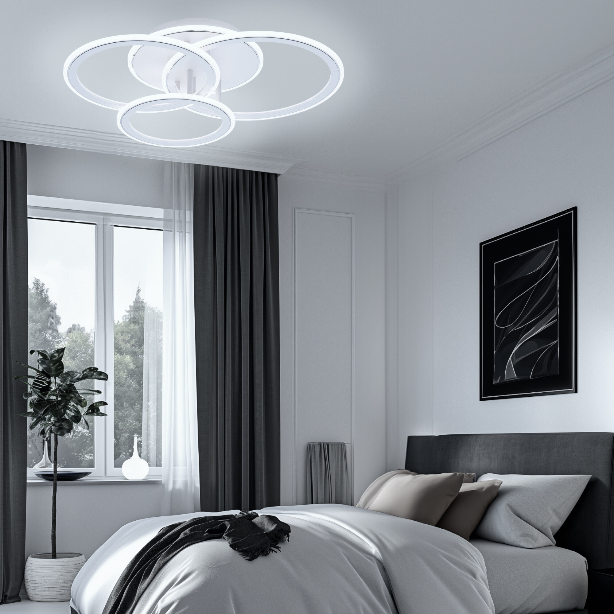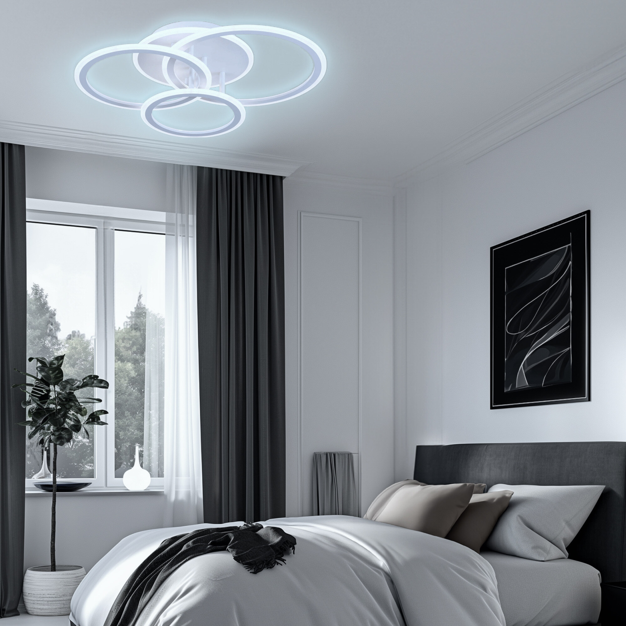 Люстрой можно управлять с помощью пульта ДУ и настенным выключателем. Изделие оснащено яркими светодиодами, с возможностью плавной регулировки яркости от 10 до 100%. Цветовая температура регулируется в диапазоне 3000К - 5500К, позволяя настроить любые оттенки теплого, нейтрального или холодного света. Есть настраиваемые режимы памяти и таймер выключения. Свет безопасный для глаз, без мерцания и пульсаций. Пульт ДУ в комплекте, тип батареек ААА (в комплект не входят, приобретаются отдельно).