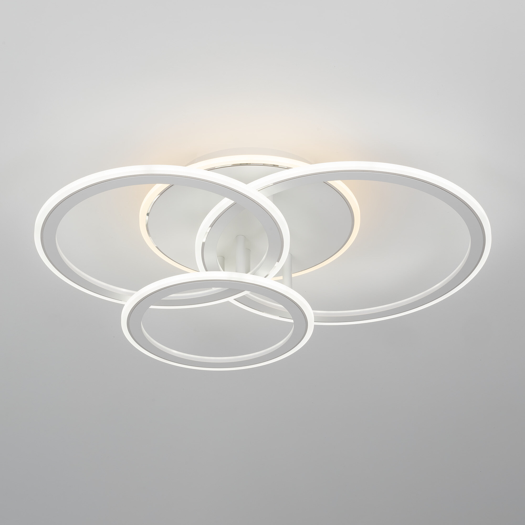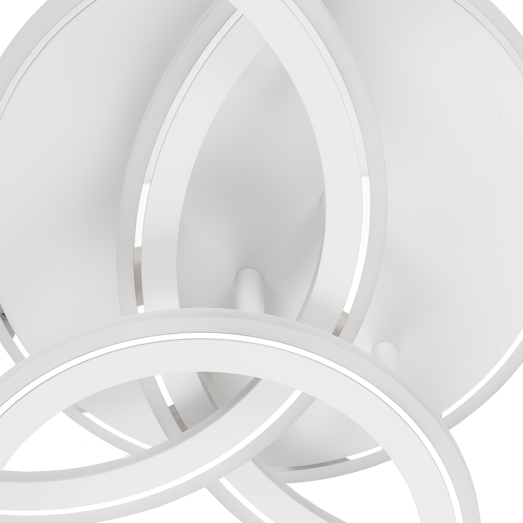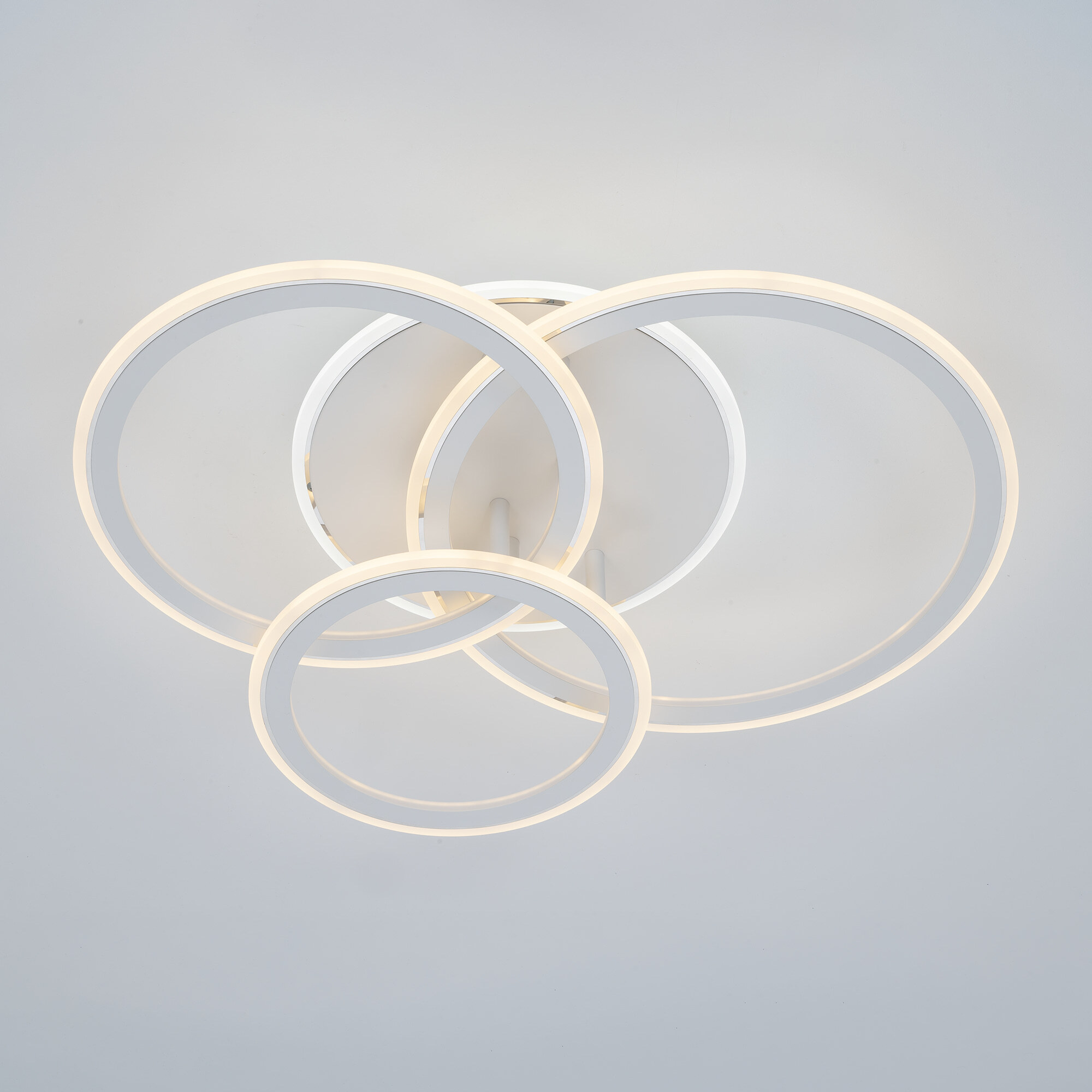 Светодиодная потолочная люстра Citilux Тринити CL238130 с пультом дистанционного управления выполнена в современном стиле. Корпус металлический, цвет белый матовый с утончённым хромированным декором. Основание круглое, три светодиодных модуля - плафона, формирующих внешний вид люстры, имеют форму колец.