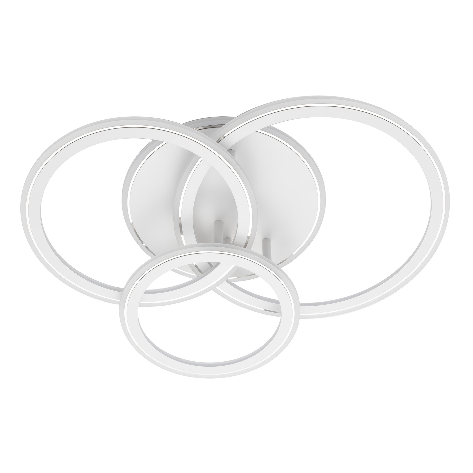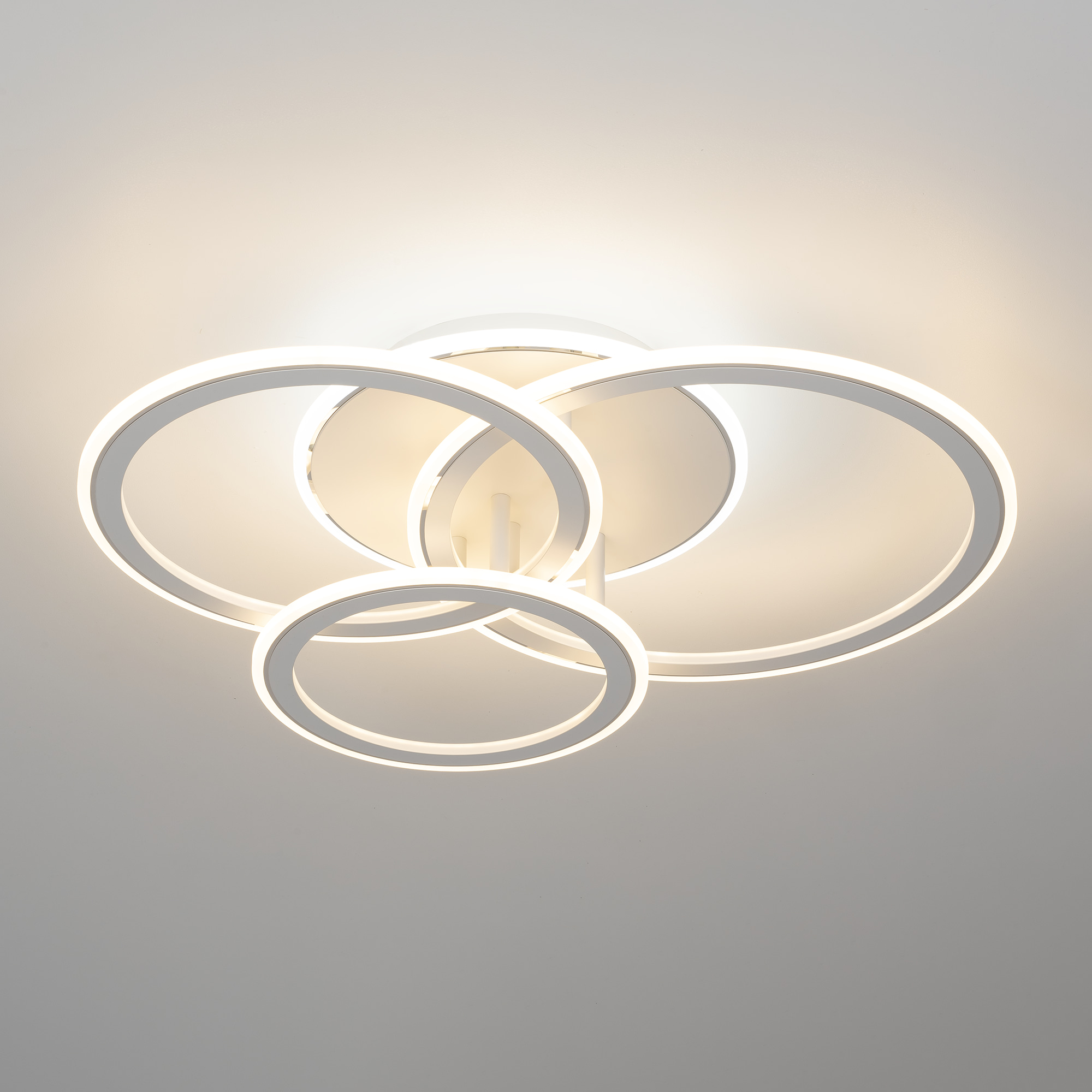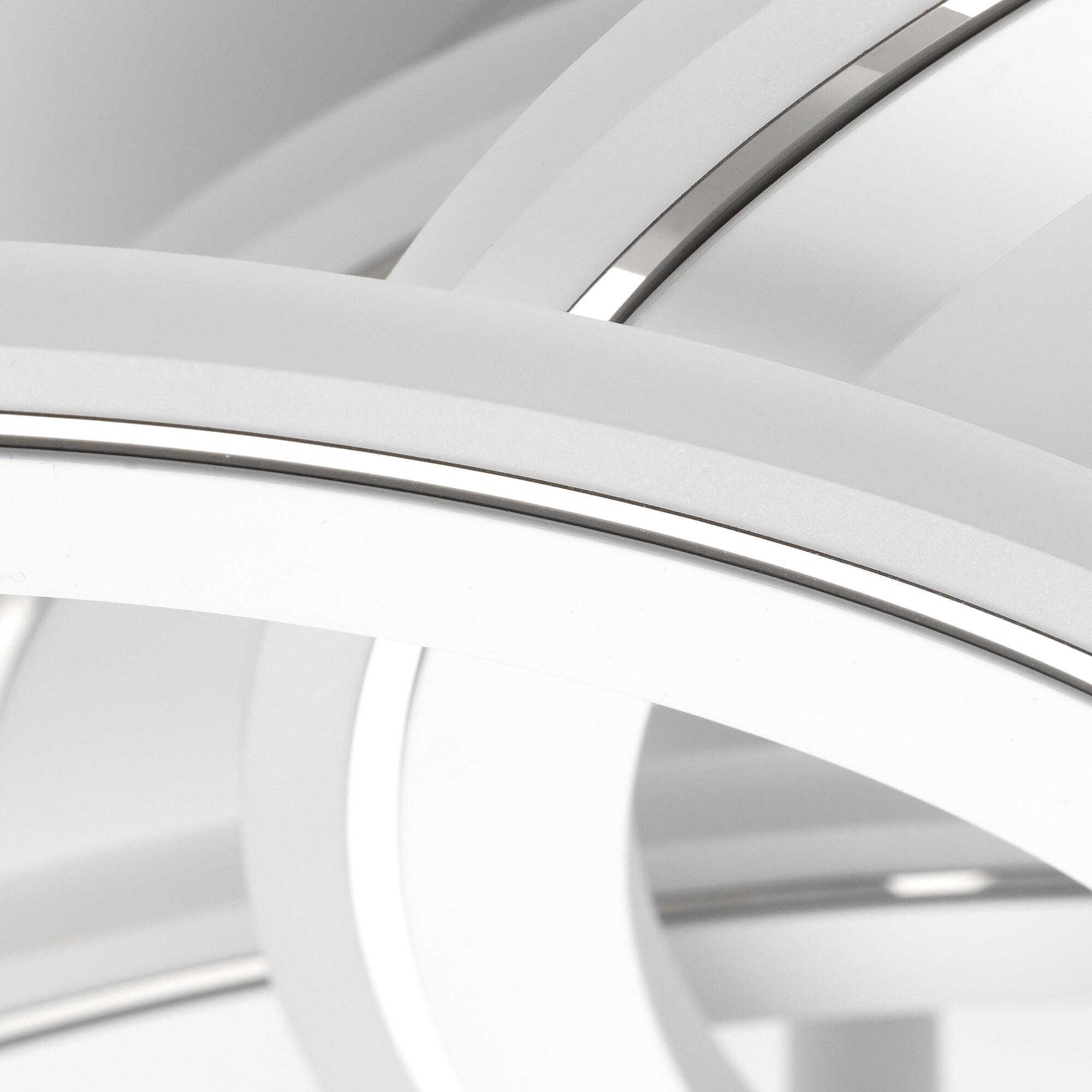Светодиодная потолочная люстра Citilux Тринити CL238130 с пультом дистанционного управления выполнена в современном стиле. Корпус металлический, цвет белый матовый с утончённым хромированным декором. Основание круглое, три светодиодных модуля - плафона, формирующих внешний вид люстры, имеют форму колец.
