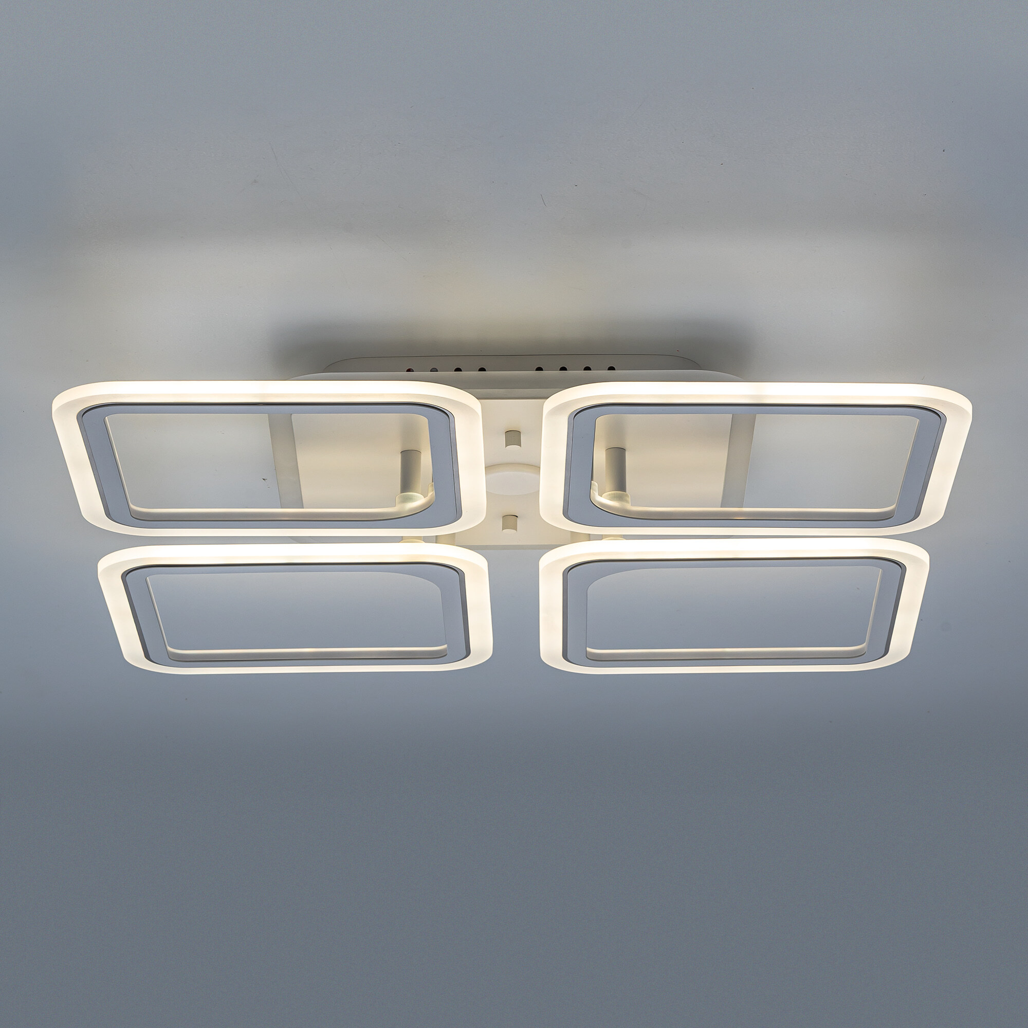 Светодиодная потолочная люстра Citilux Марсель Смарт CL232A140E RGB с голосовым управлением является лаконичным представителем современных УМНЫХ светильников экосистемы Citilux SMART . Светильник белый матовый. Основание и четыре светодиодных модулей плафонов, формирующих внешний вид люстры, квадратной формы. Корпус плафонов белого цвета изготовлен из металла, рассеиватель белый матовый из оптического полимера. Модель подходит для всех типов потолков, в том числе натяжных. Люстрой можно управлять: из приложения на смартфоне по Wi-Fi при наличии интернета, с помощью голосовых помощников Алиса и Маруся, есть возможность запуска настроенных сценариев с помощью Сири, а также пультом дистанционного управления и с настенного выключателя. Изделие оснащено мощными светодиодами, с возможностью плавной регулировки яркости от 100% до 10%. Цветовая температура регулируется в диапазоне от 3000К до 5500К, позволяя настроить любые оттенки теплого, нейтрального или холодного света. В основании светильника установлена независимая цветная RGB подсветка. Мощность люстры 65Вт, 5900Лм. Пульт ДУ в комплекте, тип батареек ААА (батарейками не комплектуется).Citilux CL232A MARSEL: Вдохновение в каждом луче.