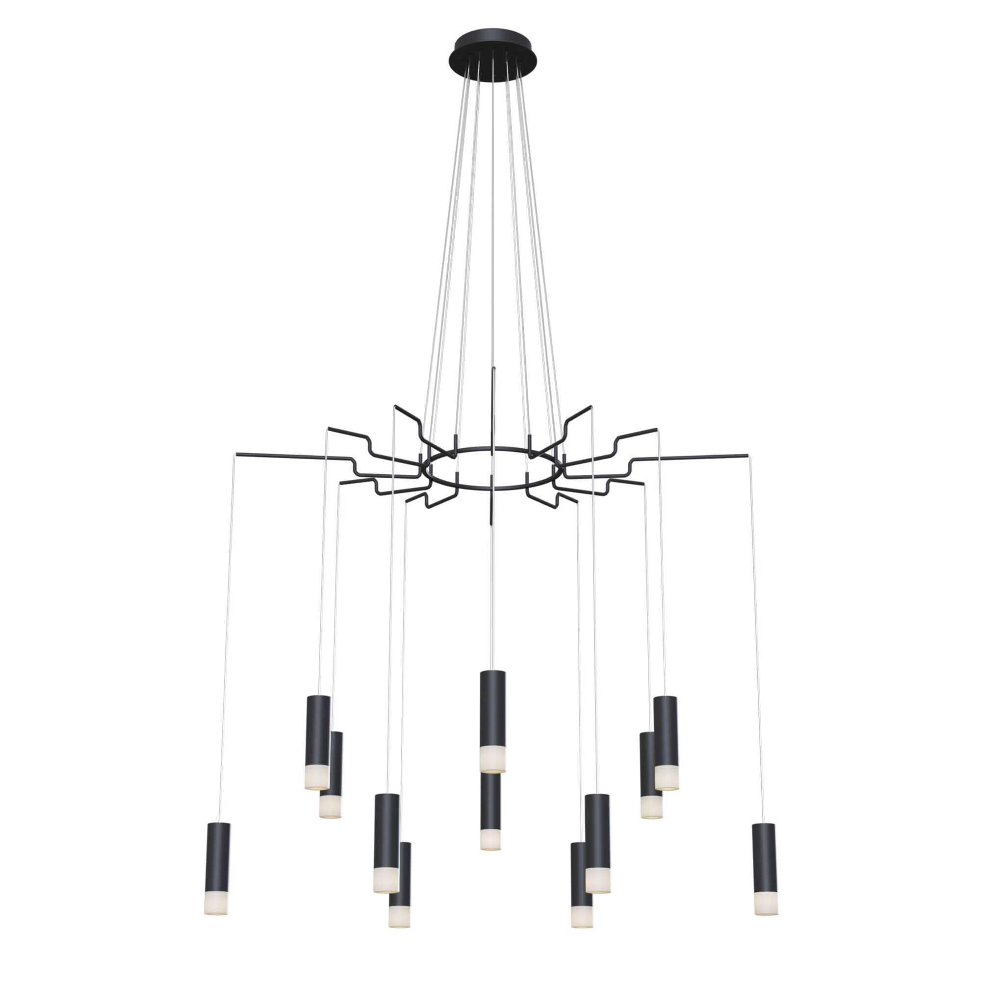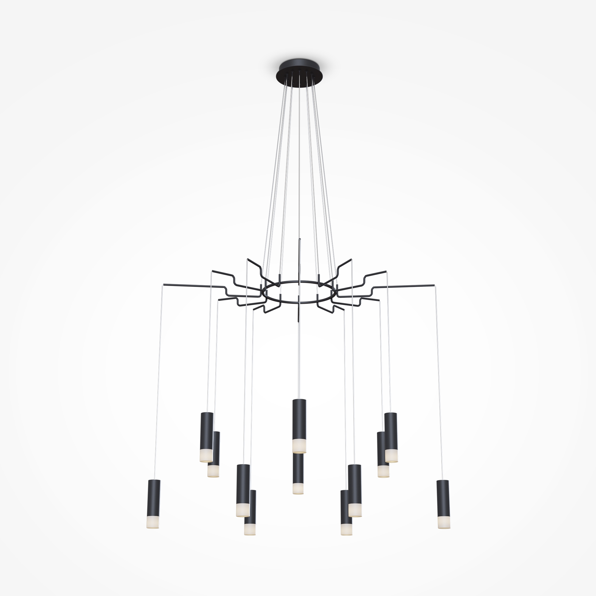 Арматура – металл, цвет – черный и белый. Плафоны-цилиндры – металл в тон арматуре, акриловые вставки. Визуально легкий силуэт. Регулируемая высота.