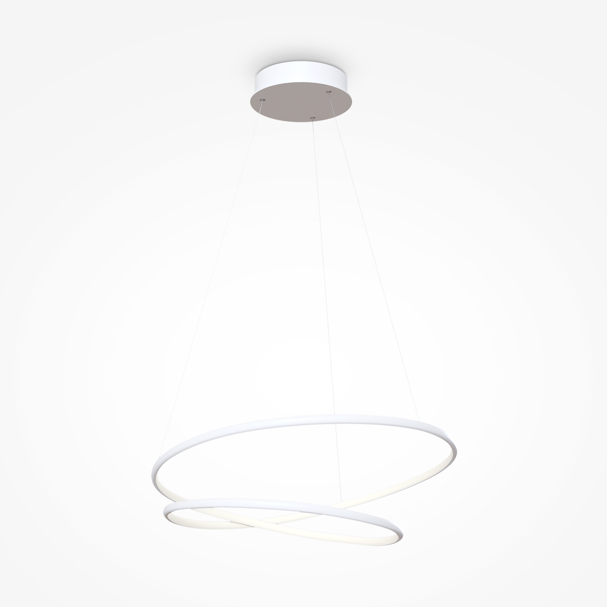 Материал арматуры – алюминий, порошковое окрашивание. Цвета - белый, латунь. . Источ ник света – SMD-светодиоды, скрытые под опаловым диффузором. Два варианта регулируемой цветовой температуры - 2600К-3500К и 3000К-4000K. Высота регулируется тросами.