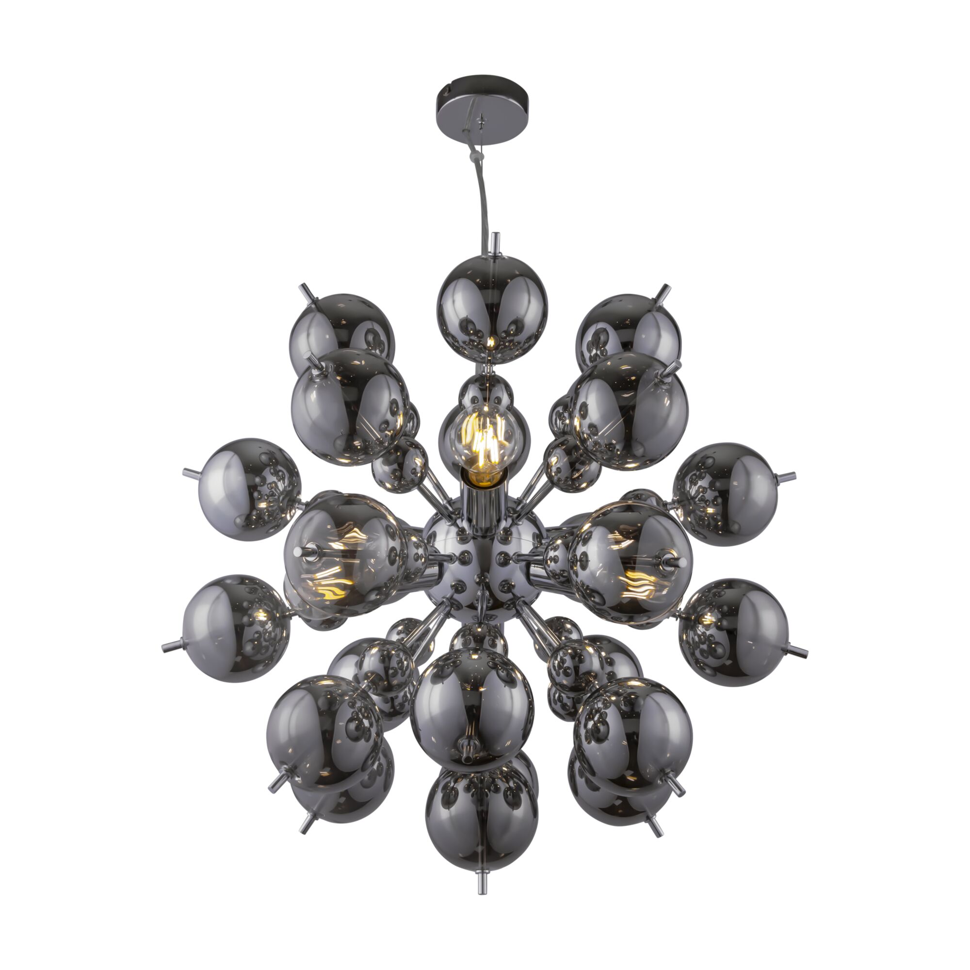 Арматура – металл, оттенки – хром, латунь. Плафоны-сферы из выдувного стекла. Гальваническое покрытие плафонов в двух оттенках: янтарный и дымчатый цвет.