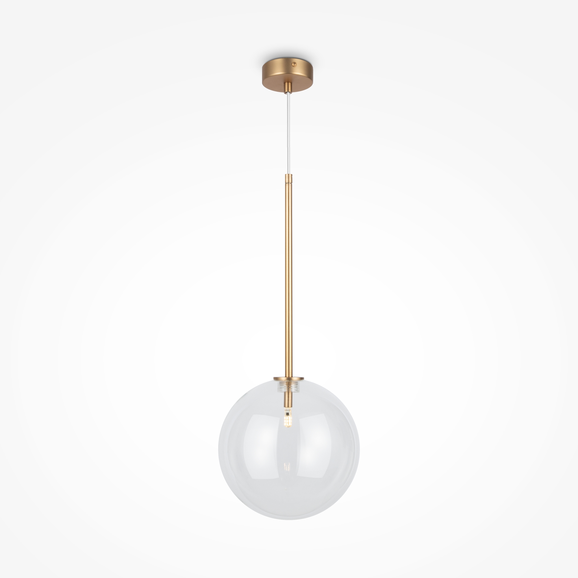Материал арматуры - металл. Цвет - латунь, черный. Изящные линии арматуры, прозрачные плафоны из стекла в виде шара с миниатюрными лампами создают эффект воздушности светильников. Регулируемая высота подвесных светильников. Цоколь G4.