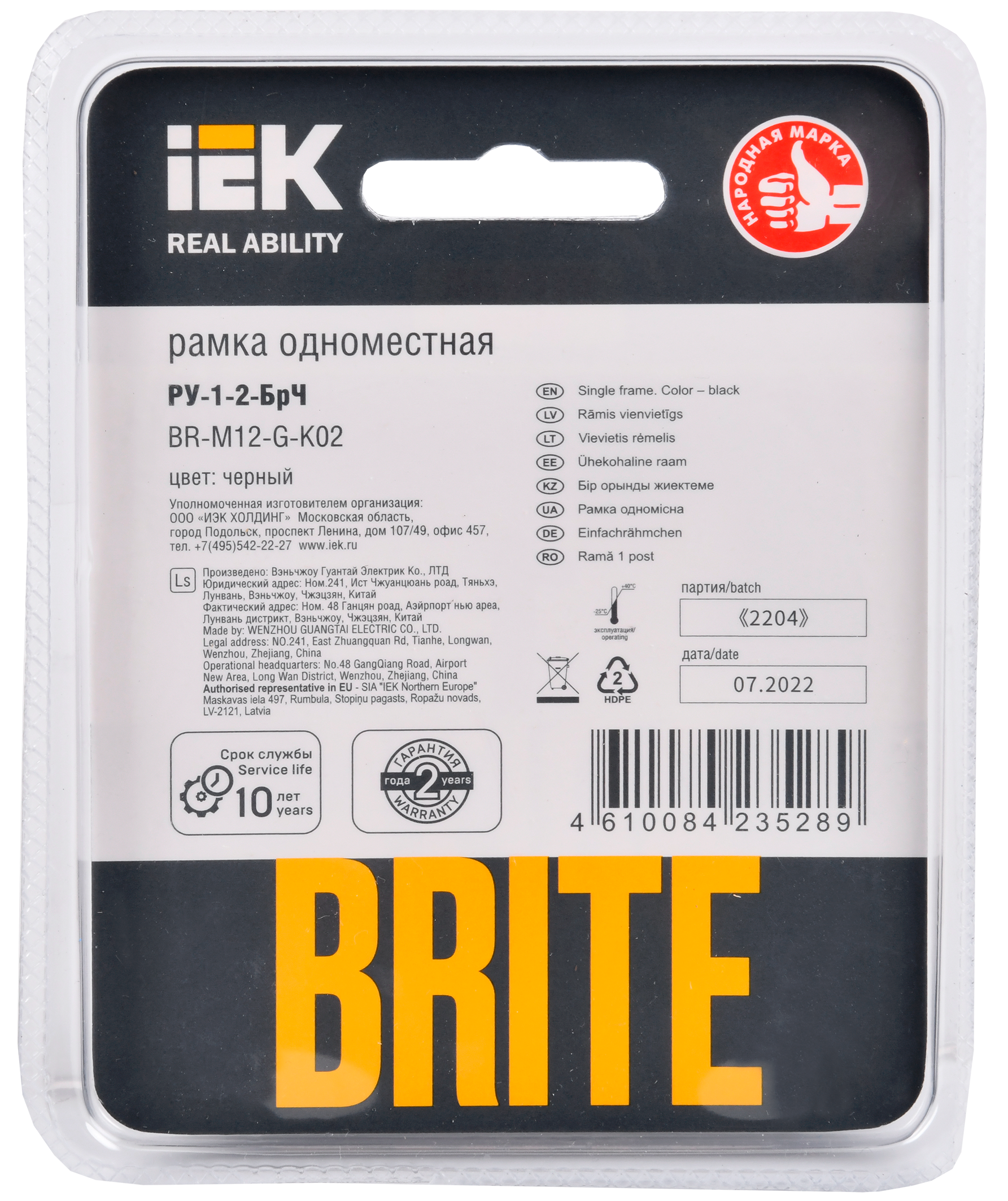 BRITE Рамка 1 -местная РУ-1-2-БрЧ стекло черный IEK