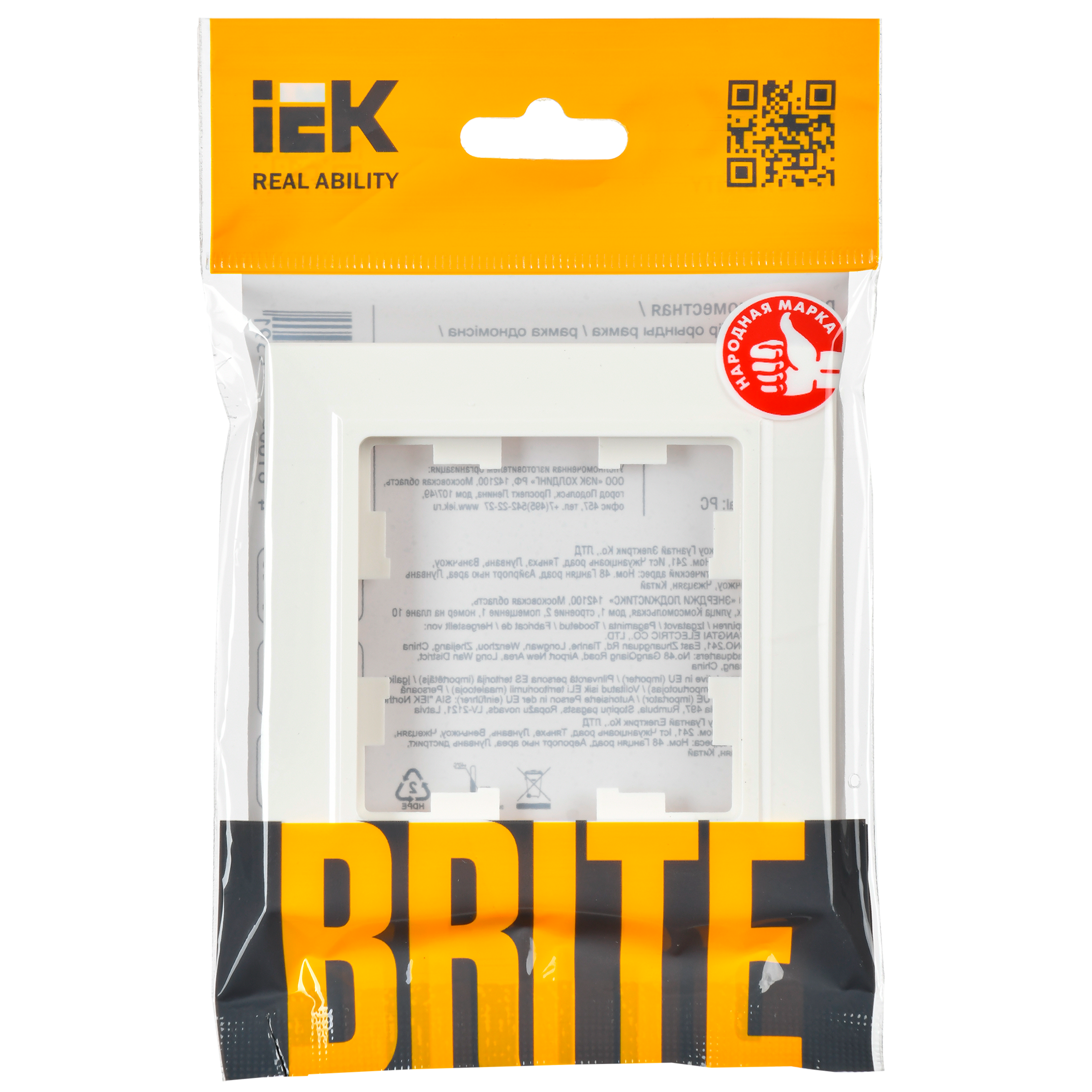BRITE Рамка 1-местная РУ-1-БрБ белый IEK