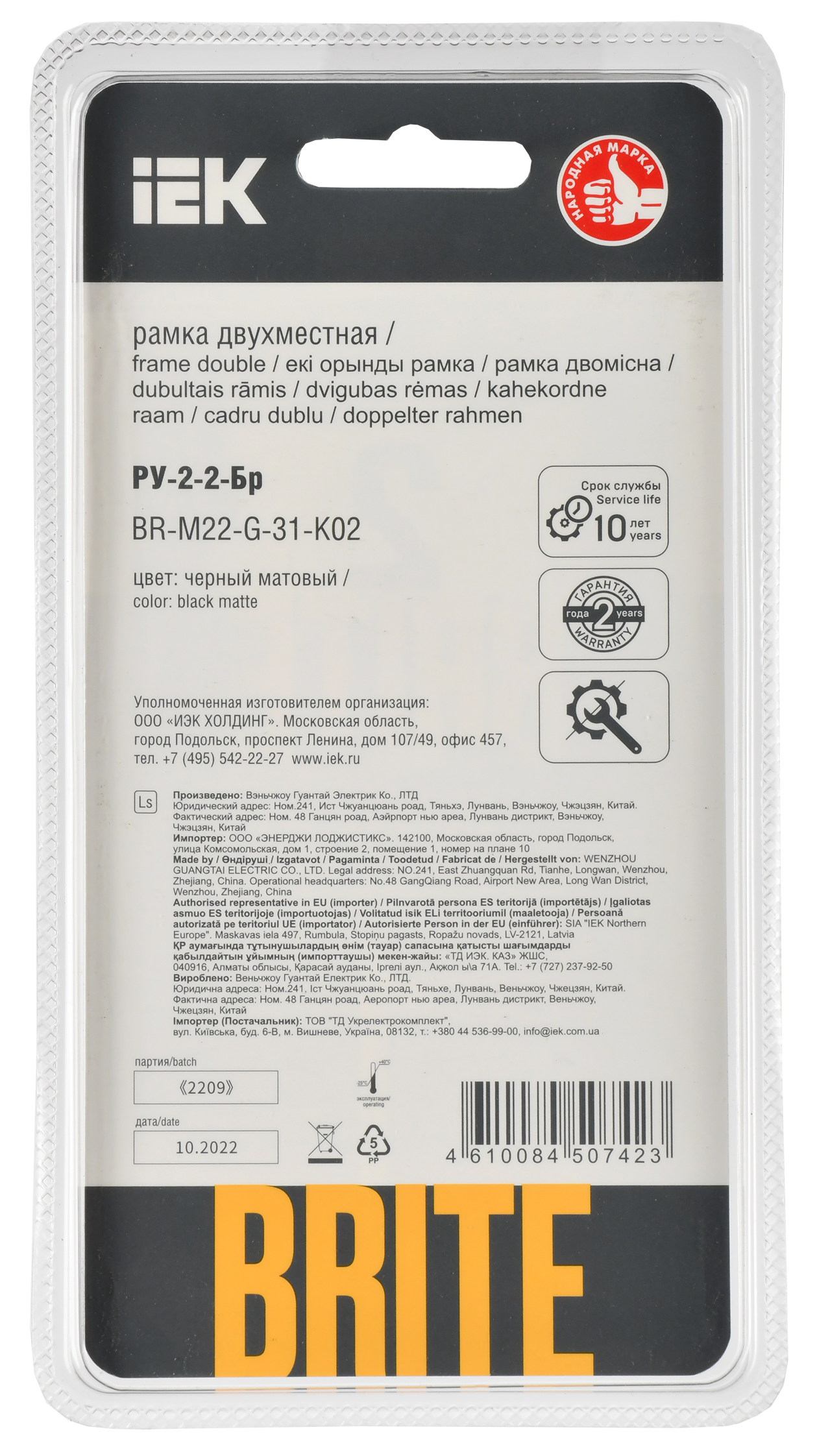 BRITE Рамка 2-местная РУ-2-2-Бр стекло черный матовый IEK