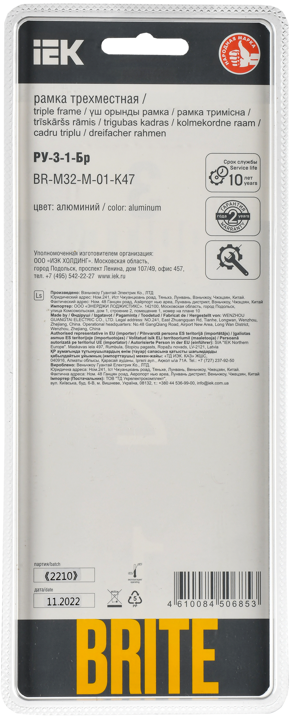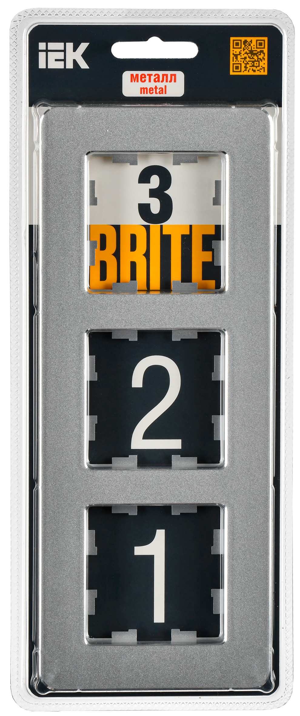 BRITE Рамка 3-местная РУ-3-1-Бр металл алюминий RE IEK