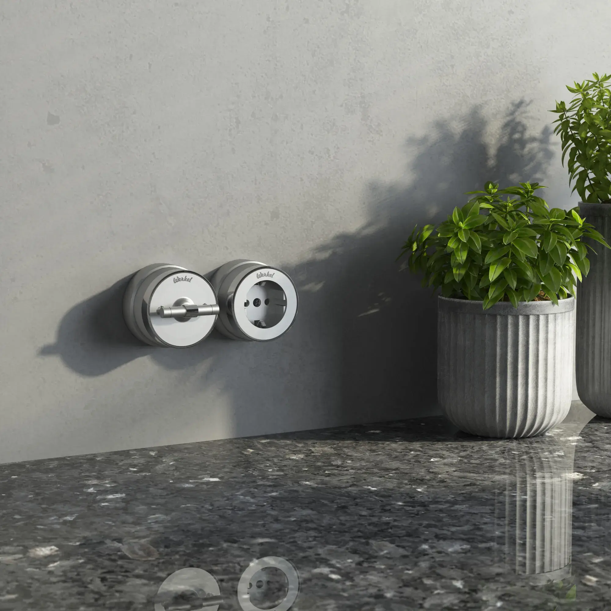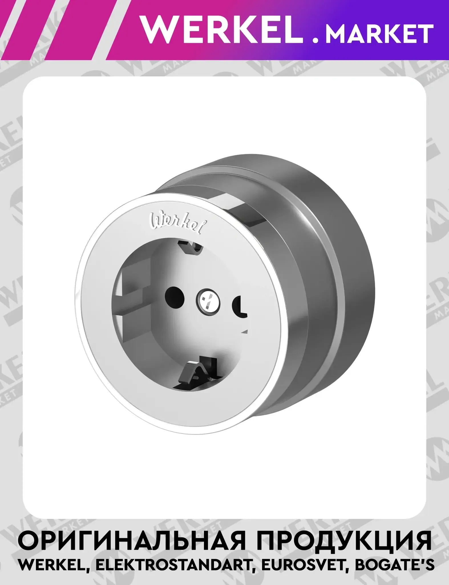 Розетка с заземлением (серебро матовый/хром) W5871050 Werkel – стиль и безопасность в вашем интерьере