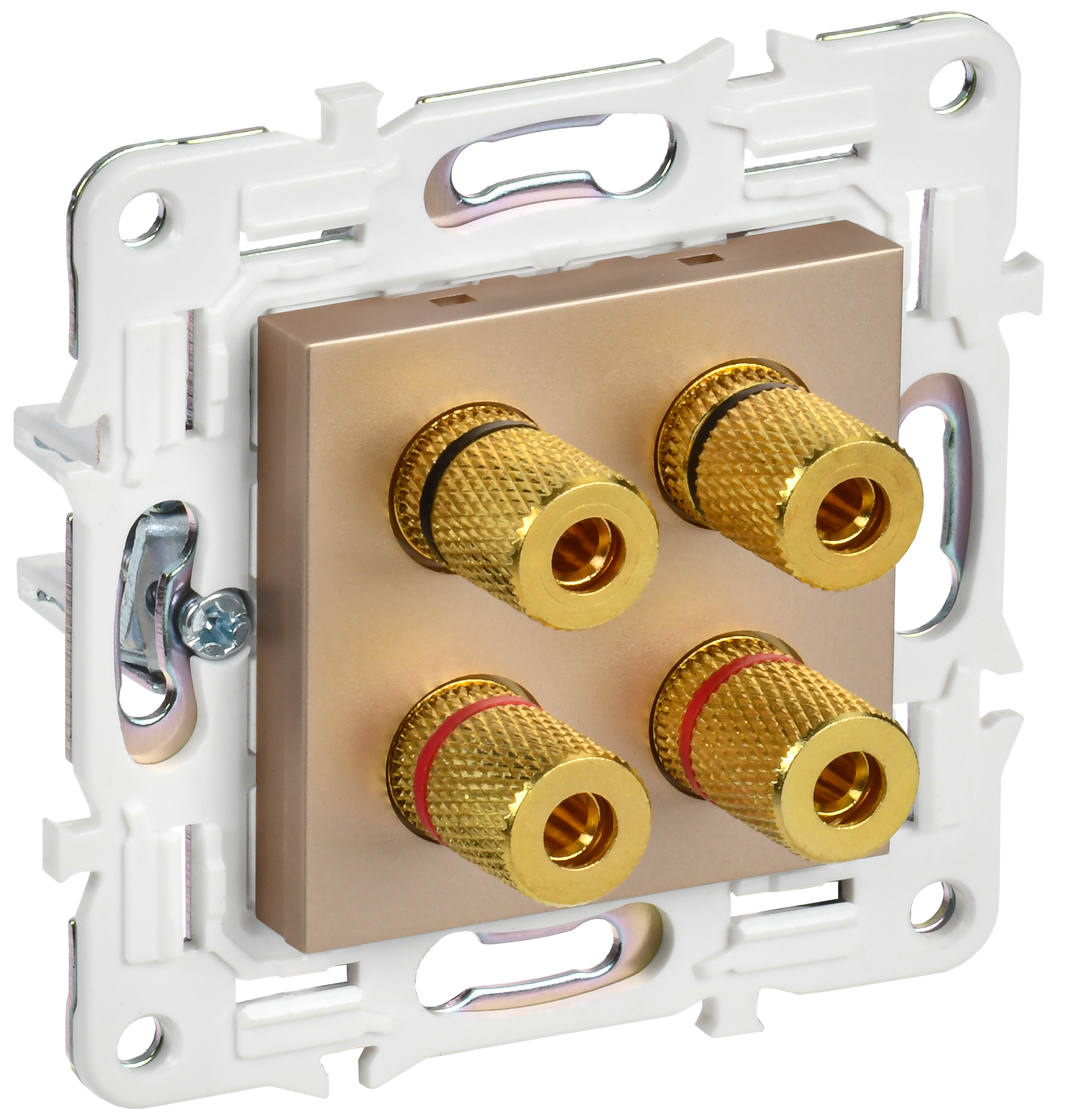 Аудиорозетки серии SKANDY предназначены для соединения акустических проводов с аудиотехникой и обеспечивают подачу аудиосигнала. Они подходят для использования в домашнем кинотеатре, конференц-залах, офисных пространствах и музыкальной индустрии. Розетки изготовлены из высококачественного поликарбоната, который устойчив к ультрафиолетовому излучению. Металлизированная контактная группа с дополнительным покрытием обеспечивает долгий срок службы и создает современное стилистическое решение в дизайне. Каждая розетка позволяет подключить сразу 2 аудиоколонки. Винтовые контакты обеспечивают надежное соединение.