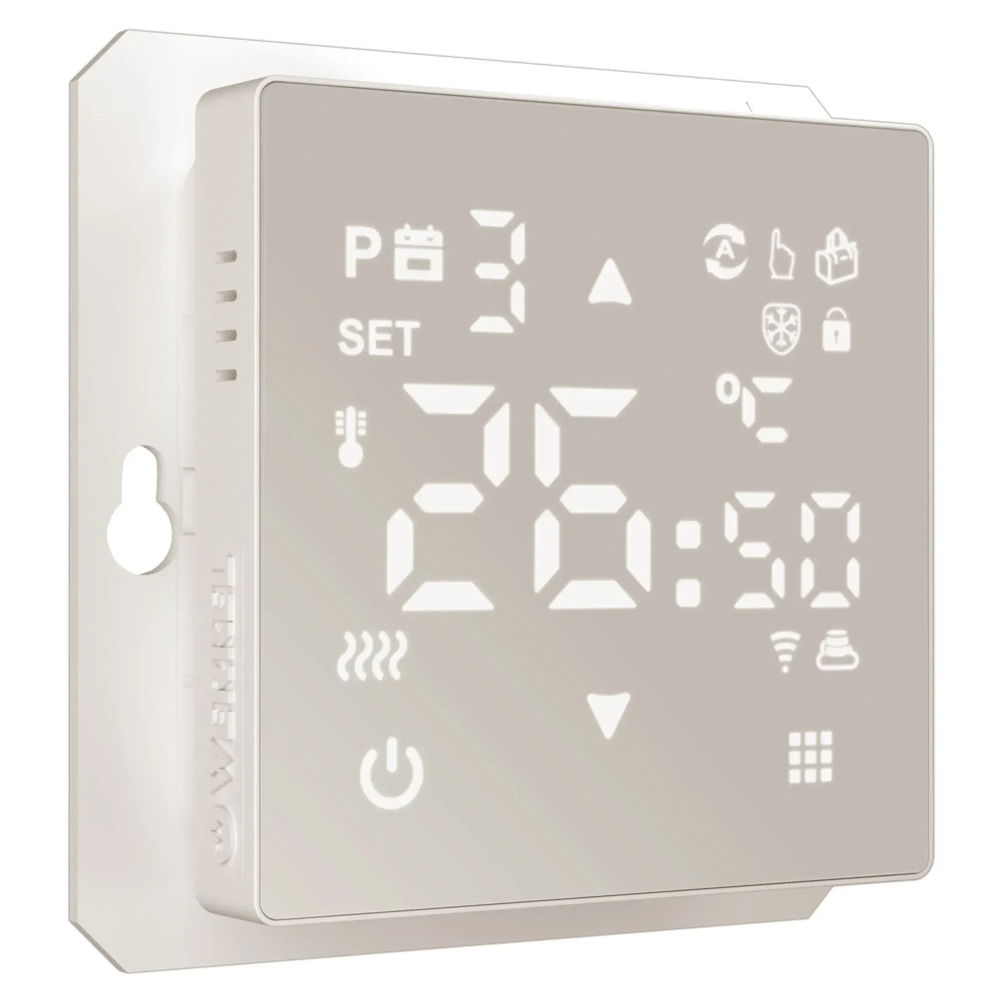 Терморегулятор выполнен в минималистичном стиле с белым матовым покрытием и изготовлен из прочных материалов. Его легко установить в стандартный подрозетник, а благодаря совместимости со всеми рамками Werkel , он органично впишется в любой интерьер — от классики до хай-тека.
